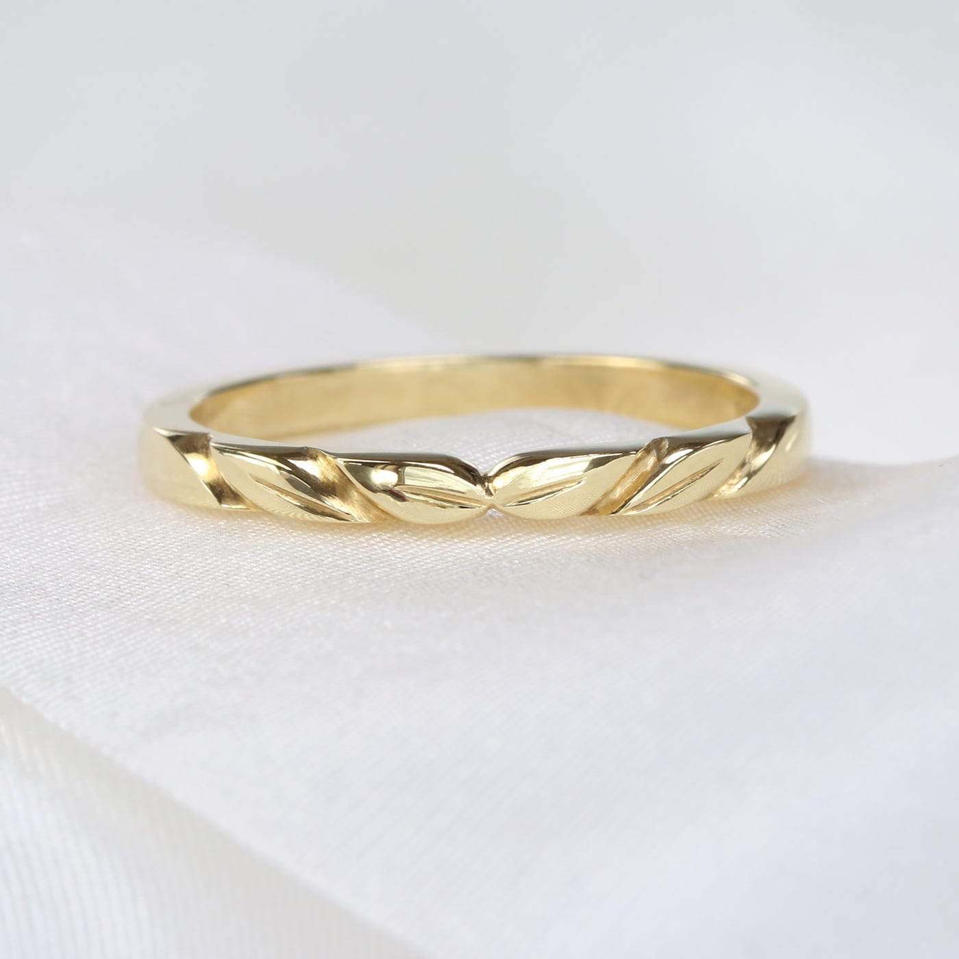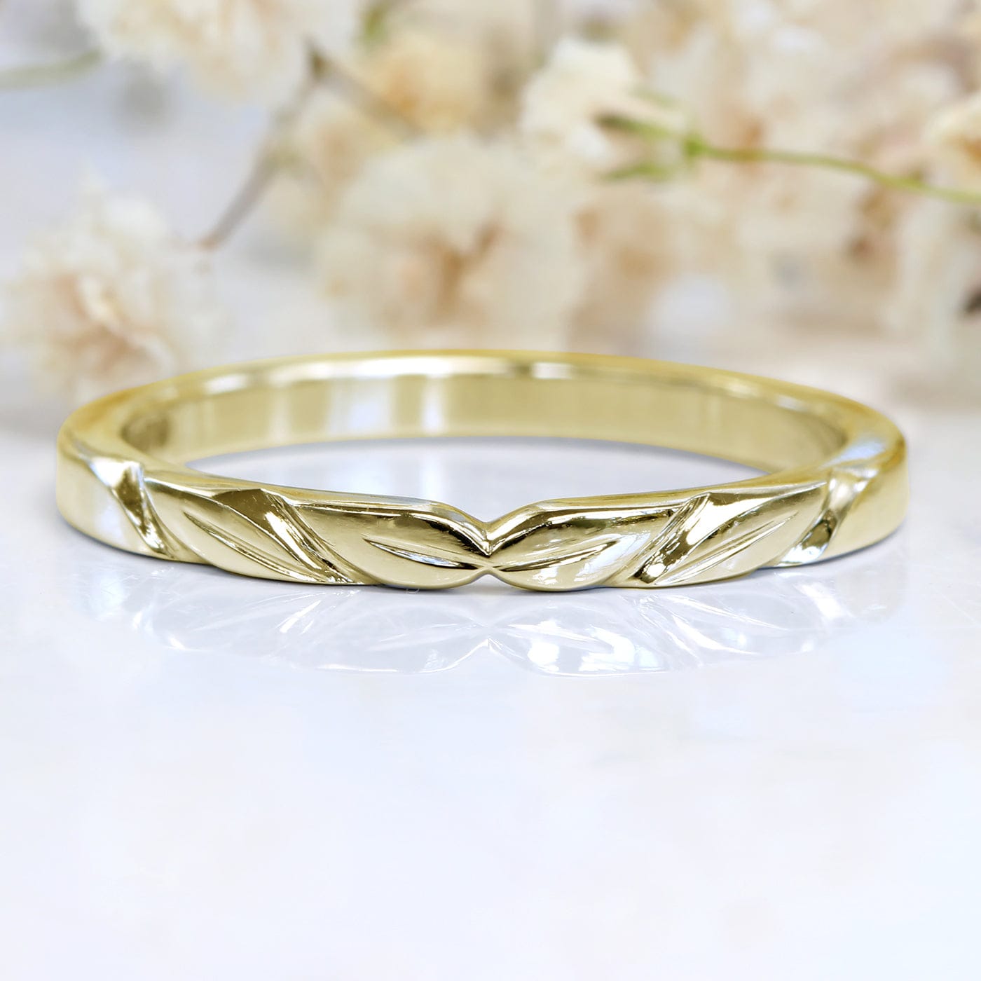 18ct Gold Slim Leaf Wedding Ring
