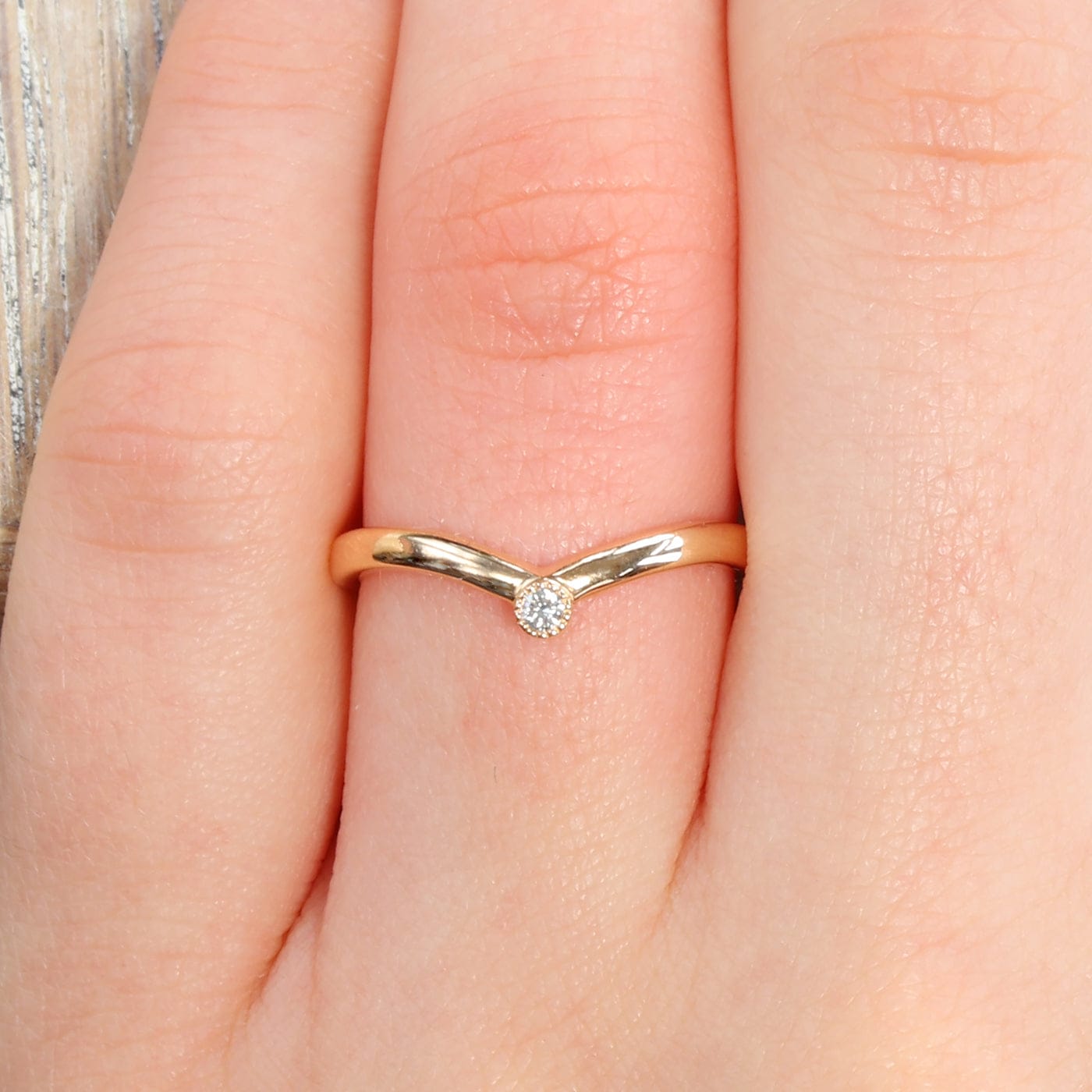 18ct Rose Gold Solitaire Diamond Wishbone Wedding Ring