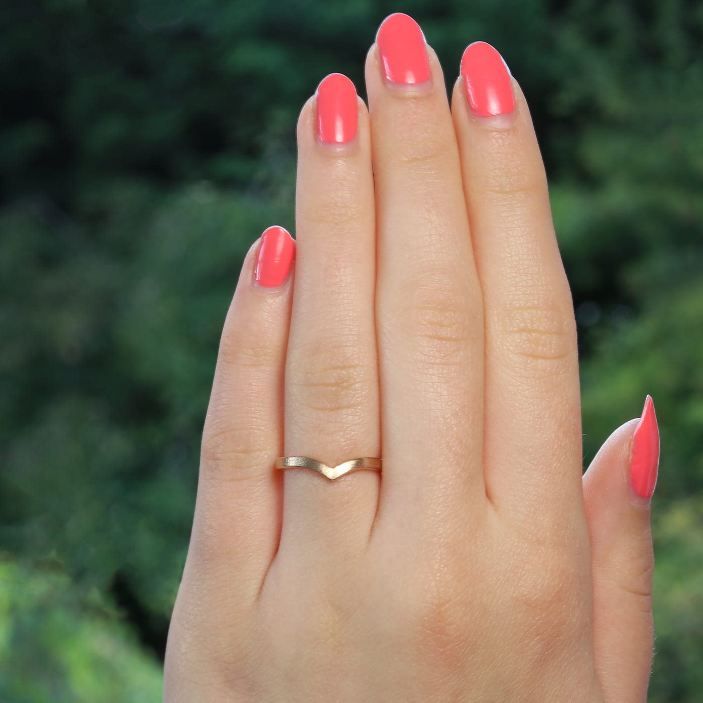 A luxurious modern ring design that's perfect for pairing with a solitaire. Lilia's signature wishbone ring features a 2mm band detailed with a chevron dip that slopes around your statement diamonds or gemstones.