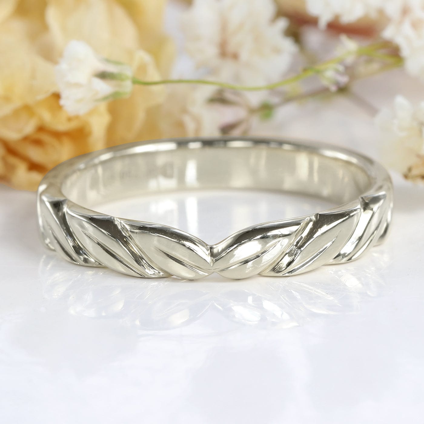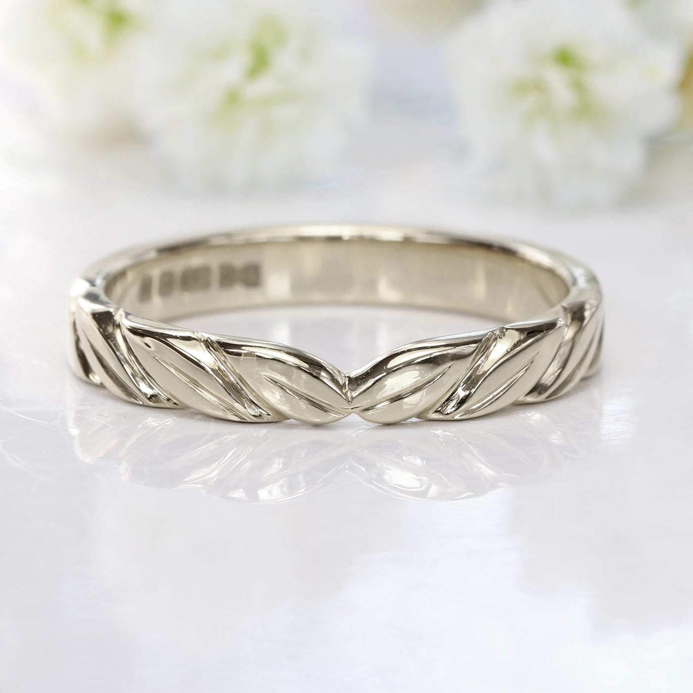 18ct White Gold Leaf Wedding Ring