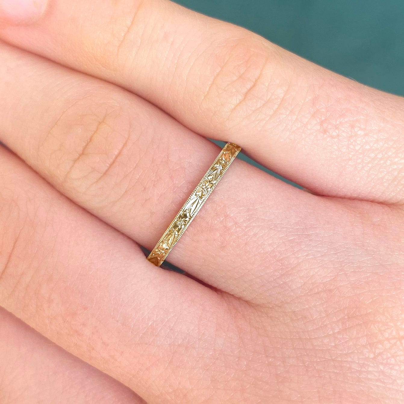 9ct Gold Orange Blossom Hand Engraved Slim Wedding Ring