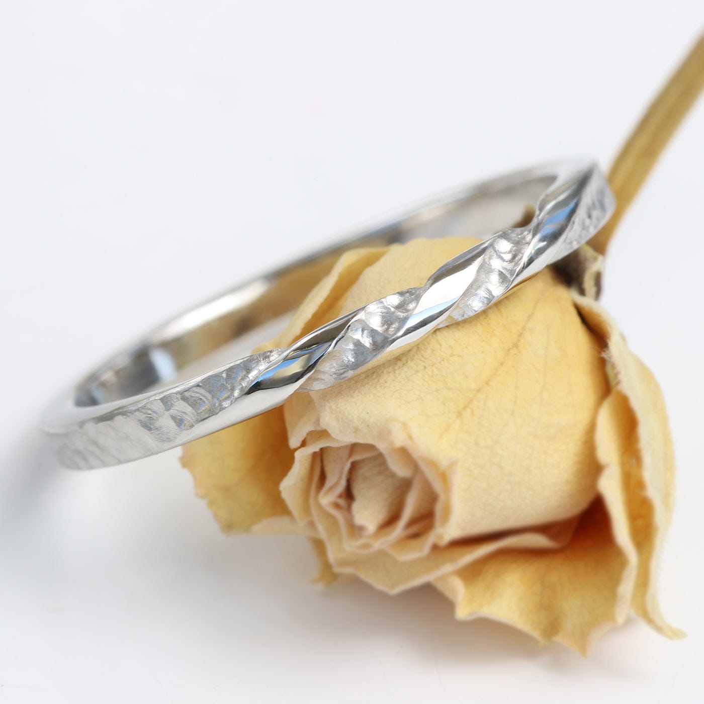 Our customer asked if the triple twist wedding ring could have a hammered finish, with the three twists polished.