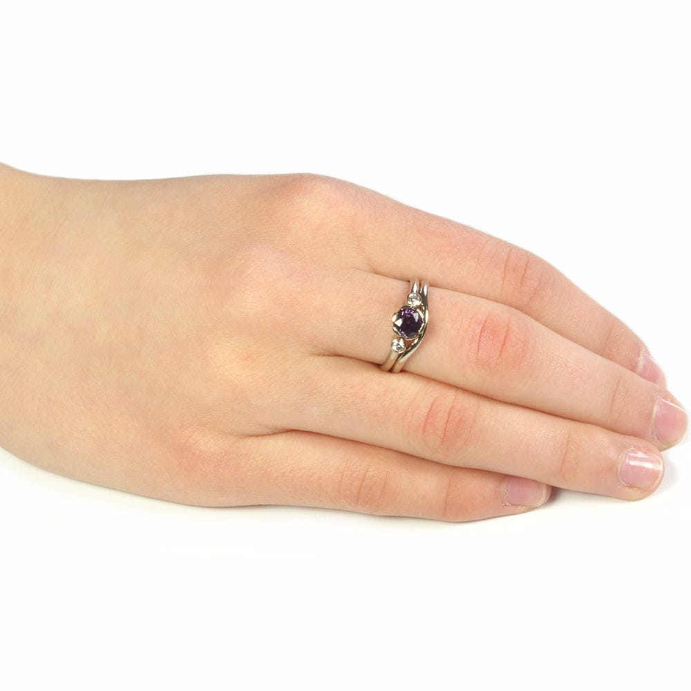 A custom Lilia Nash sapphire and diamond engagement ring, set with a 6mm purple sapphire and 2.5mm side diamonds.