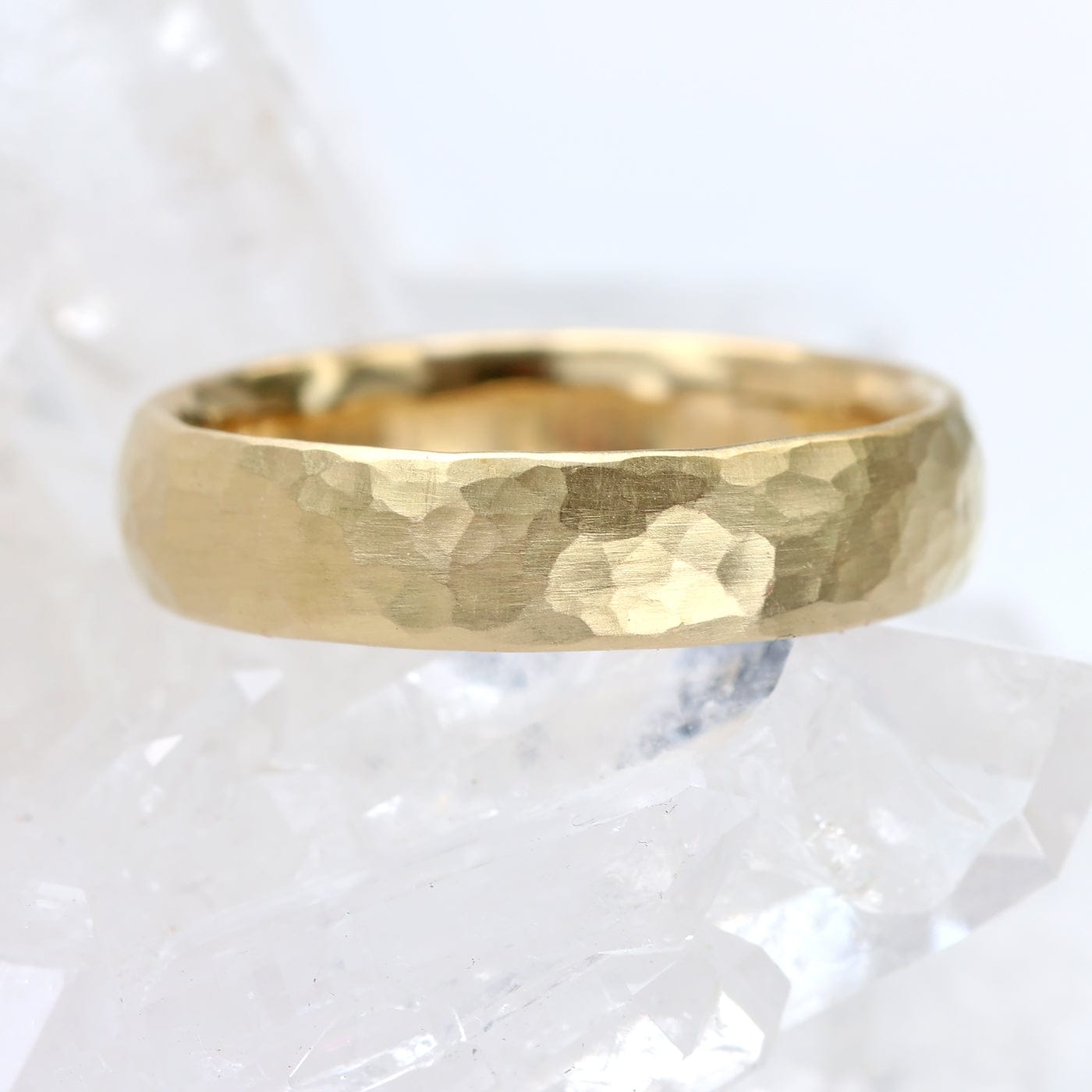 18ct Gold 4mm Comfort Fit (Court) Hammered Wedding Ring