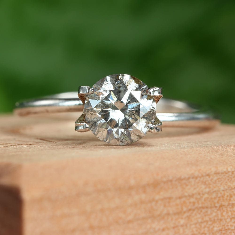 Salt and pepper diamonds have natural inclusions within the stone, resulting in captivating speckles and a unique mottled finish. These diamonds are now emerging as a coveted alternative to the conventional white diamonds. Not only do salt and pepper diamonds offer a unique flair compared to traditional white diamonds, but they also provide greater value. You can get a significantly larger gemstone for the same price, as salt and pepper diamonds are more affordable than their pure white counterparts.