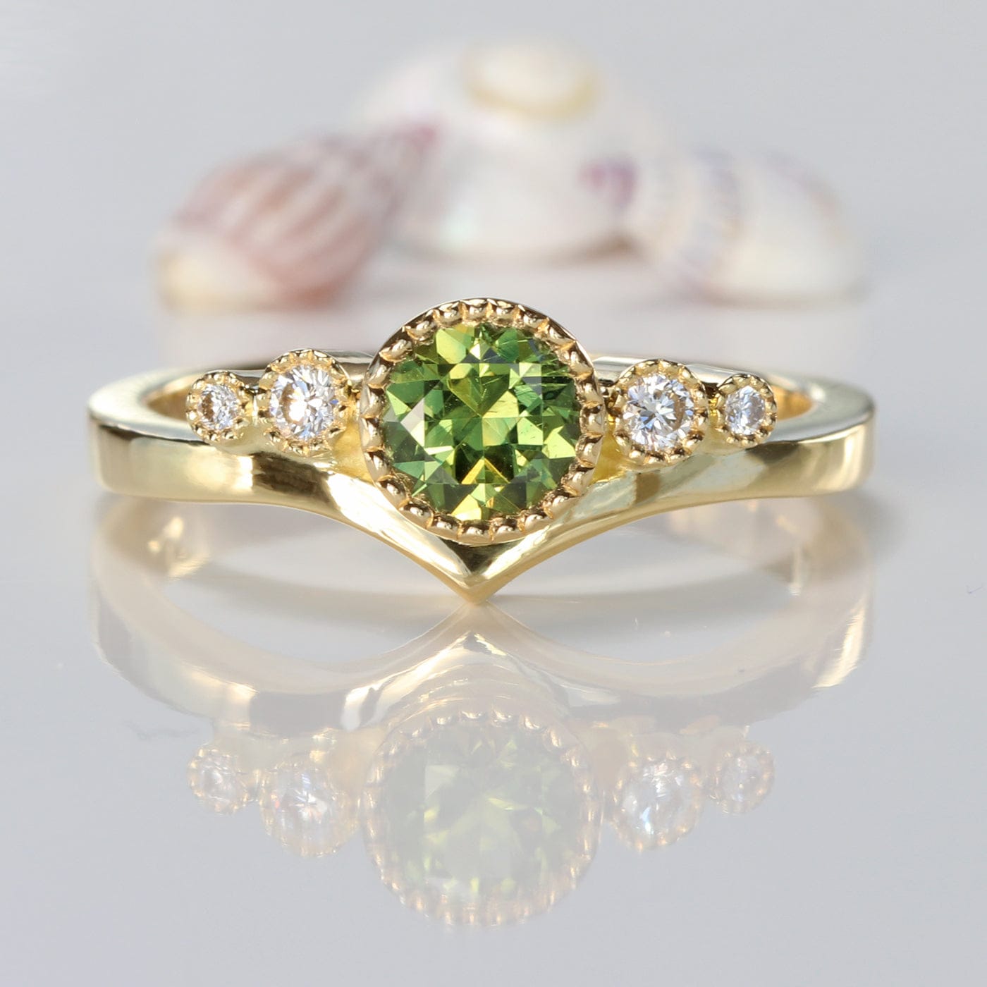 Zennor Handmade 18ct Gold Green Sapphire Wishbone Engagement Ring