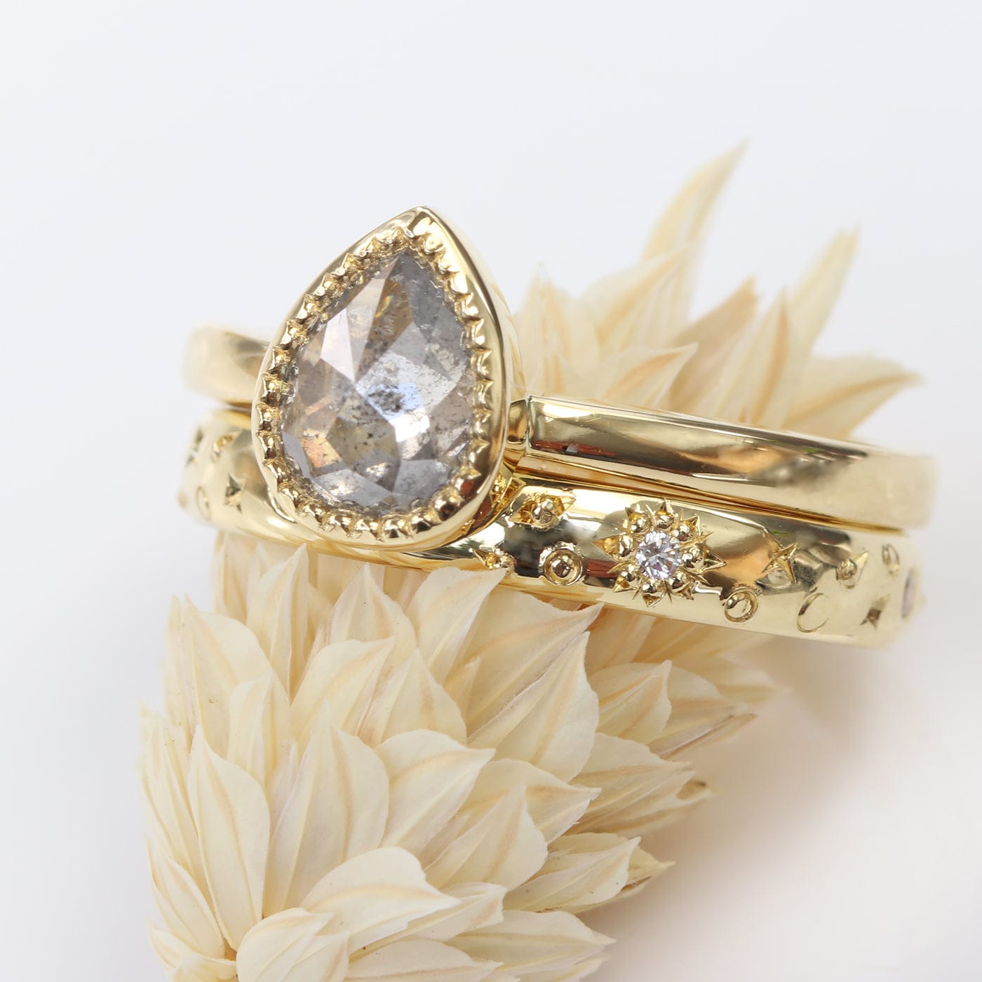 Customise a Lilia Nash wedding ring with unique design elements tailored for you. Explore our guide for diverse wedding ring styles and personalisation options.