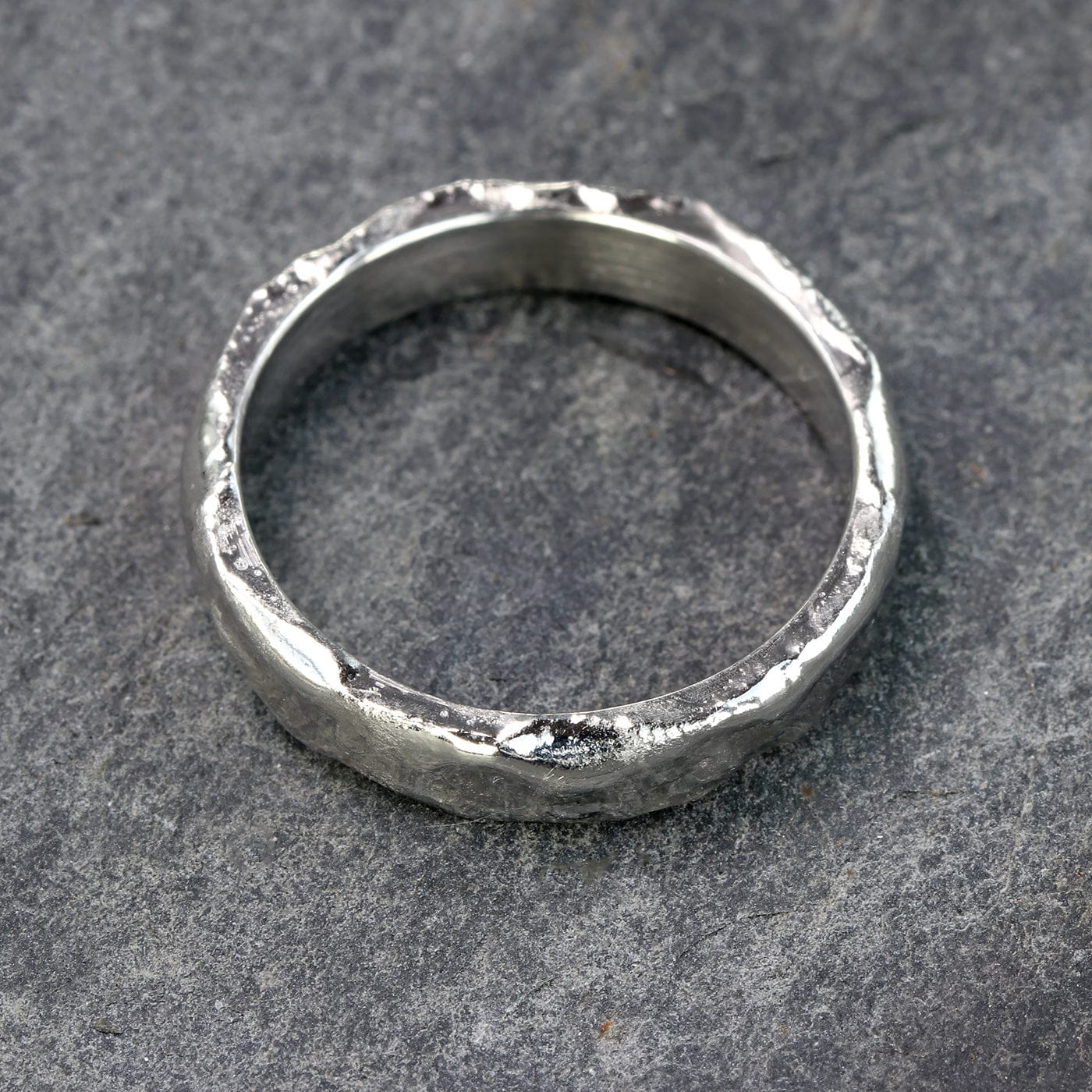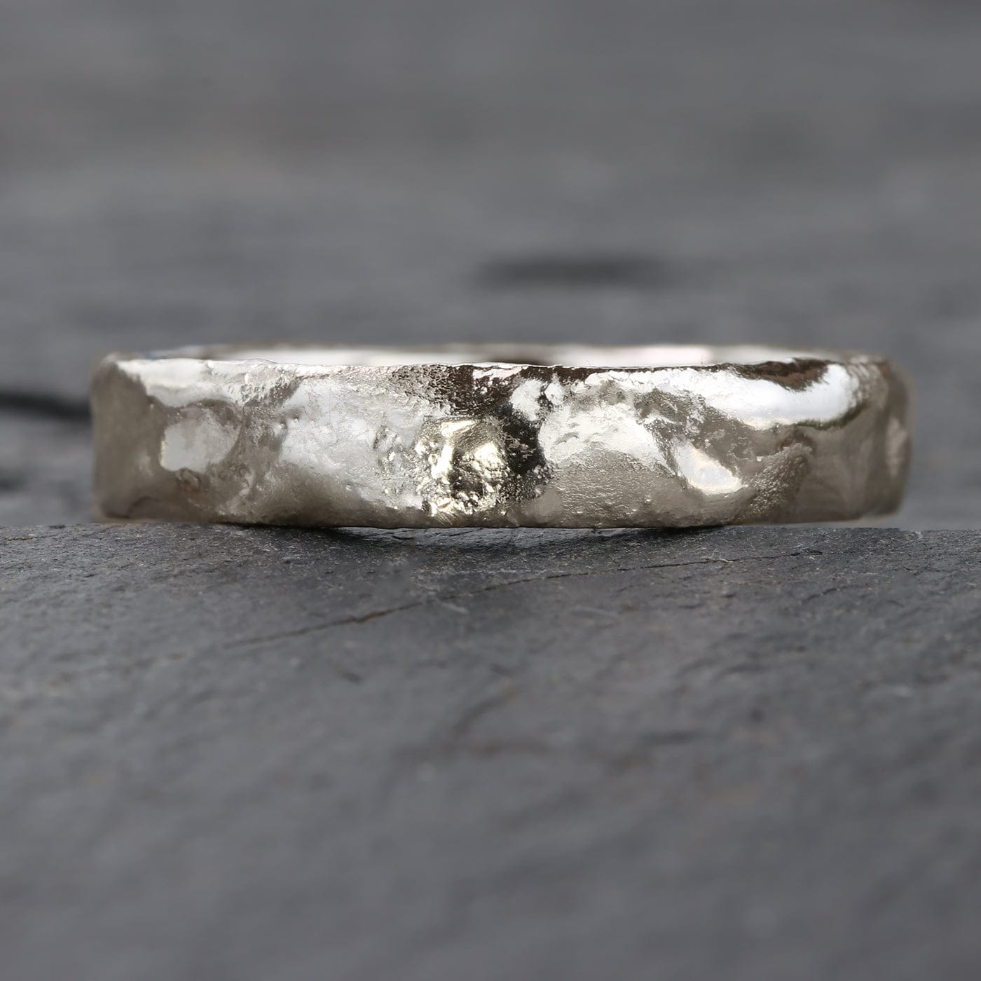 Mineral rings are our new range of free-form wedding rings. The organic design looks as if they were made by nature from volcanic rock. This 4mm version is hand-crafted from solid 950 platinum, and would make an ideal wedding ring for the groom (or bride) looking for something you won't find on the High Street.