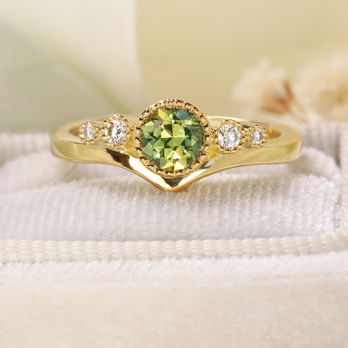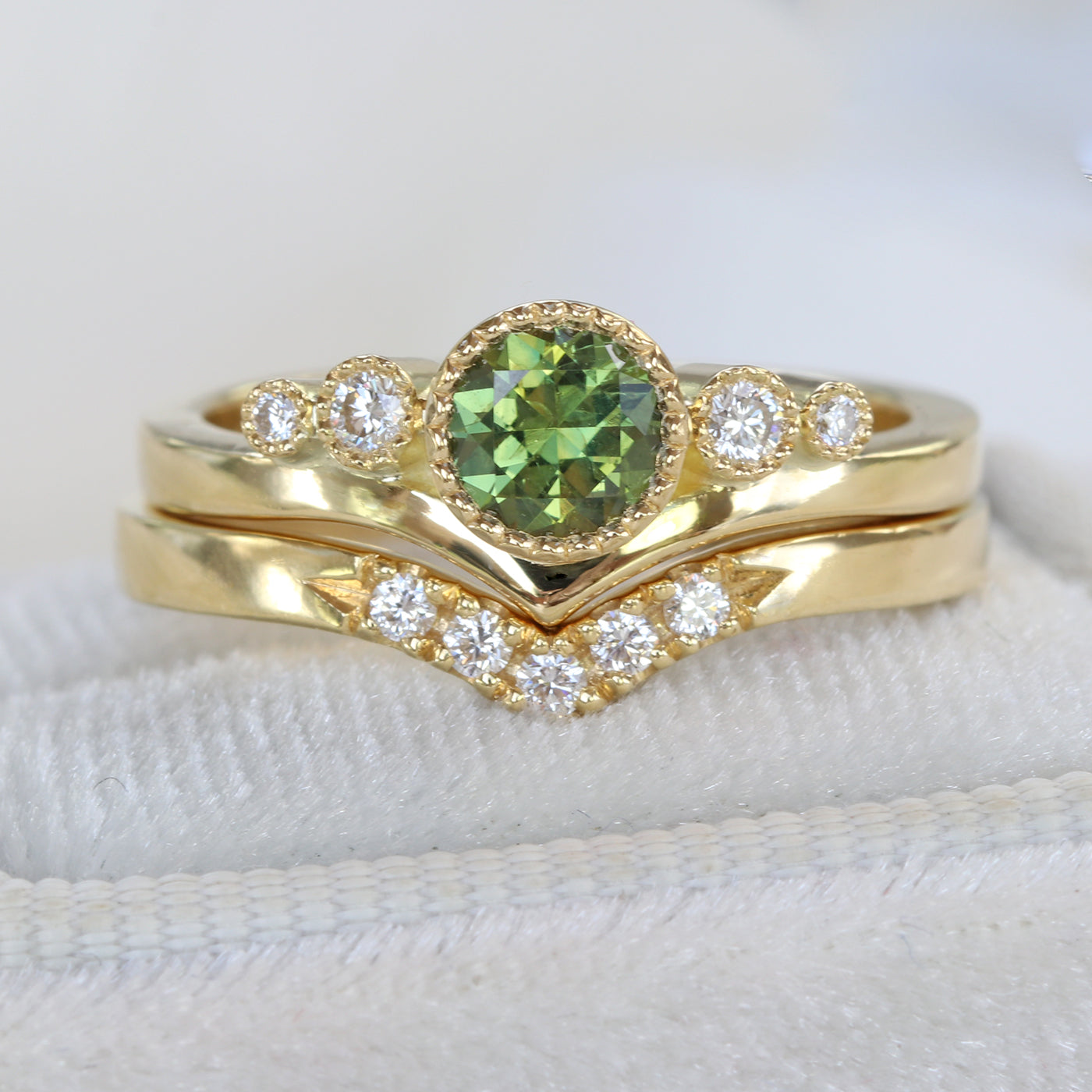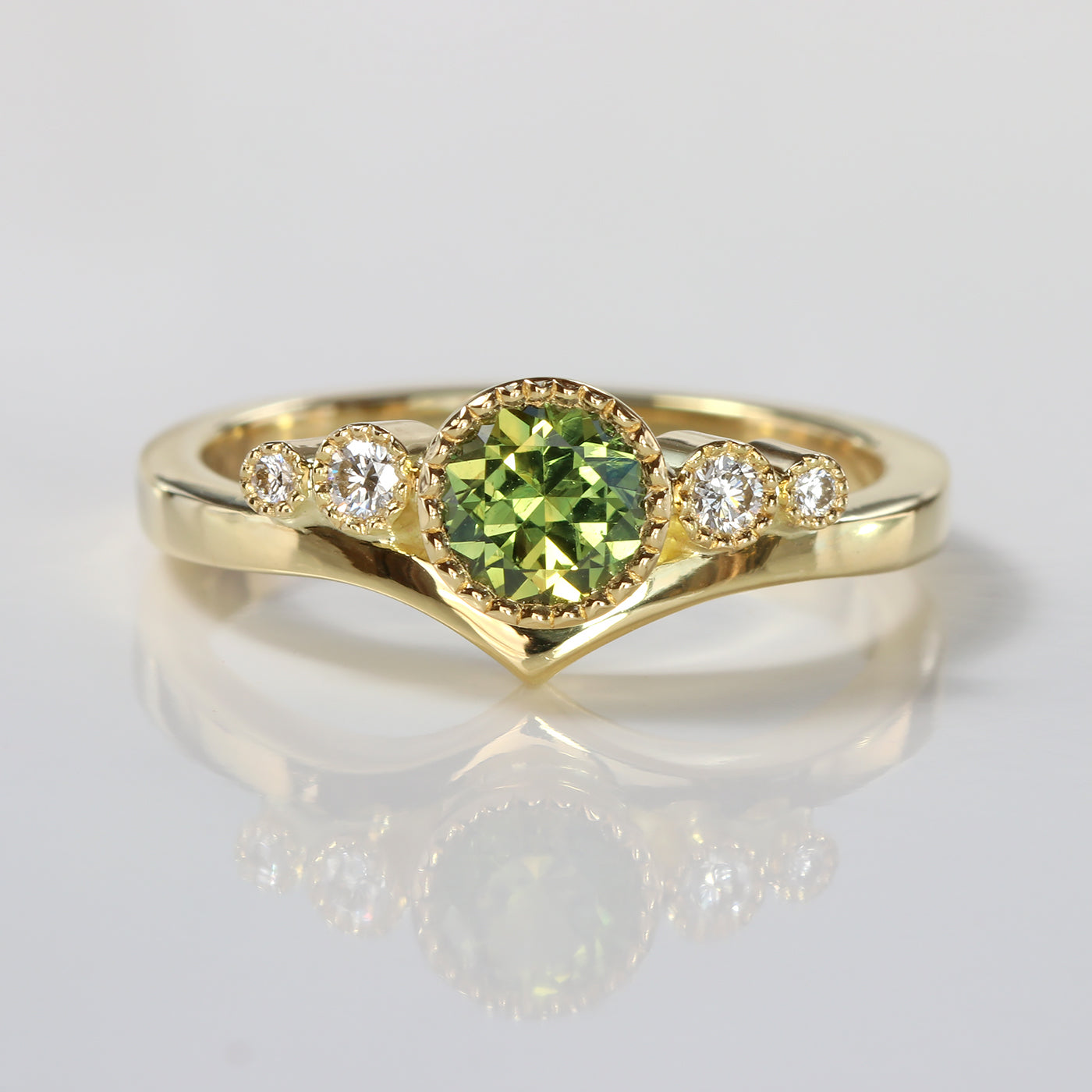 Zennor Handmade 18ct Gold Green Sapphire Wishbone Engagement Ring