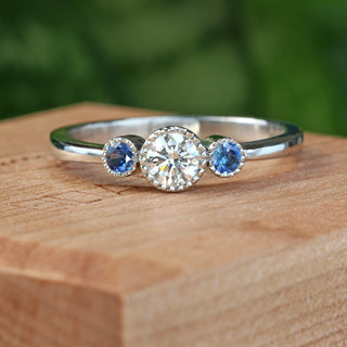 Kerensa Handmade Platinum Parti Sapphire and Diamond Trilogy Engagement Ring