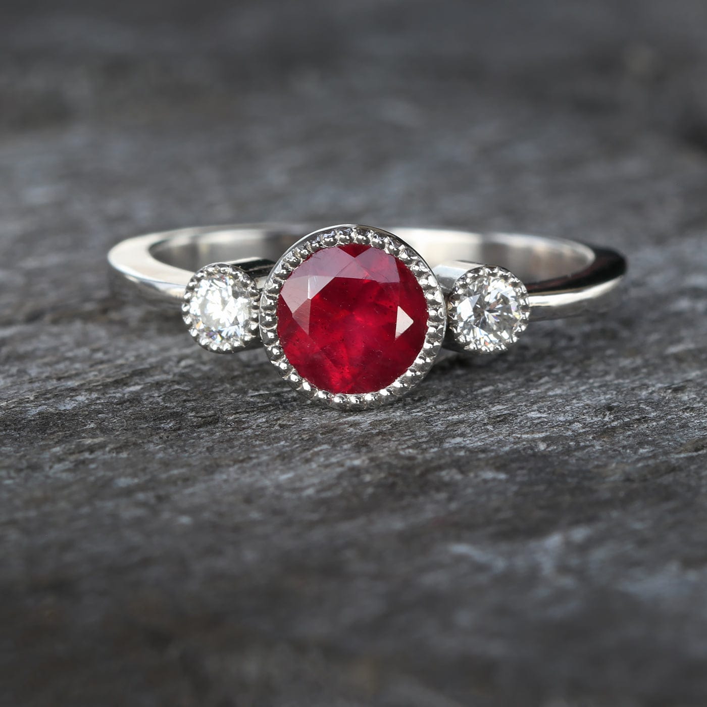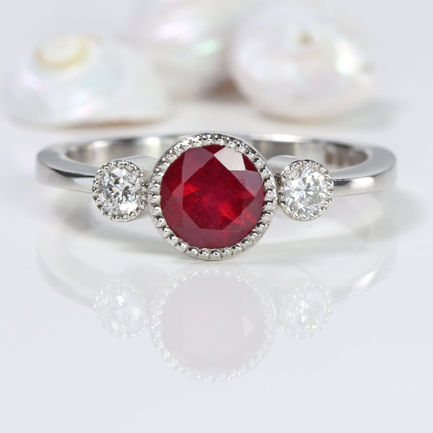 Kerensa Platinum Ruby Engagement Ring – Natural Mozambique Ruby Trilogy Design