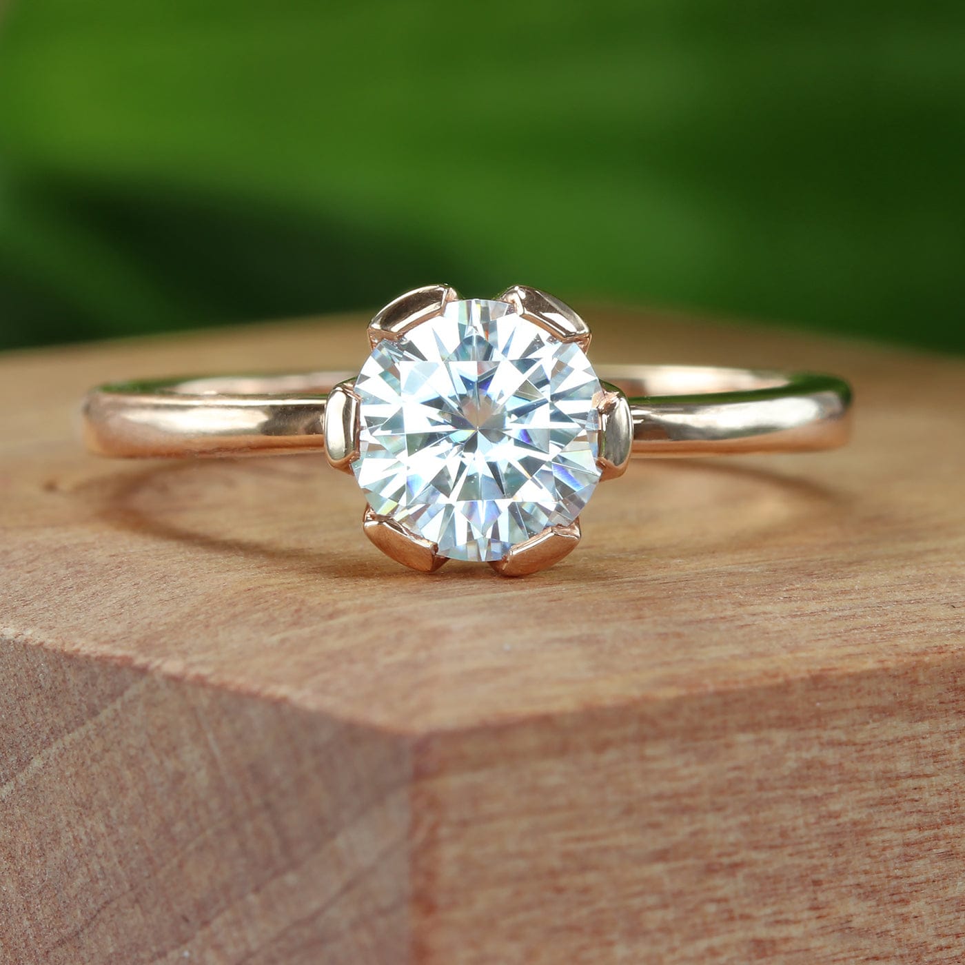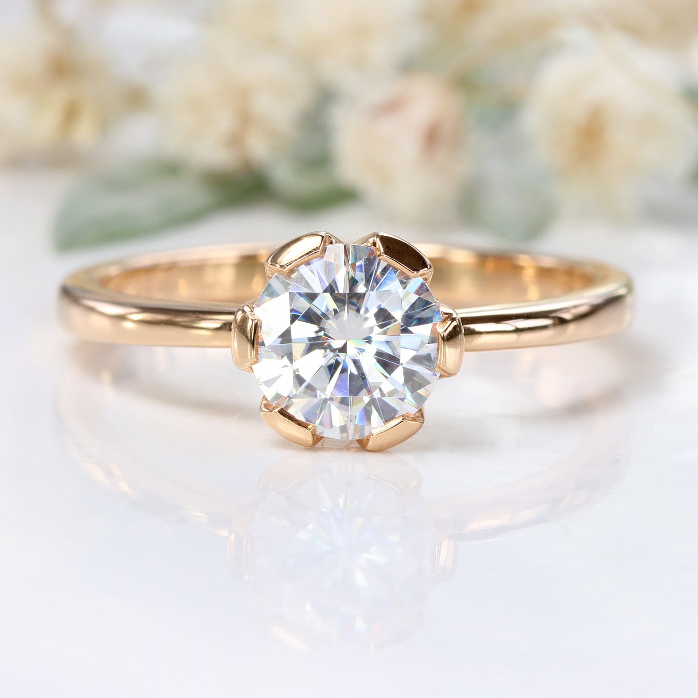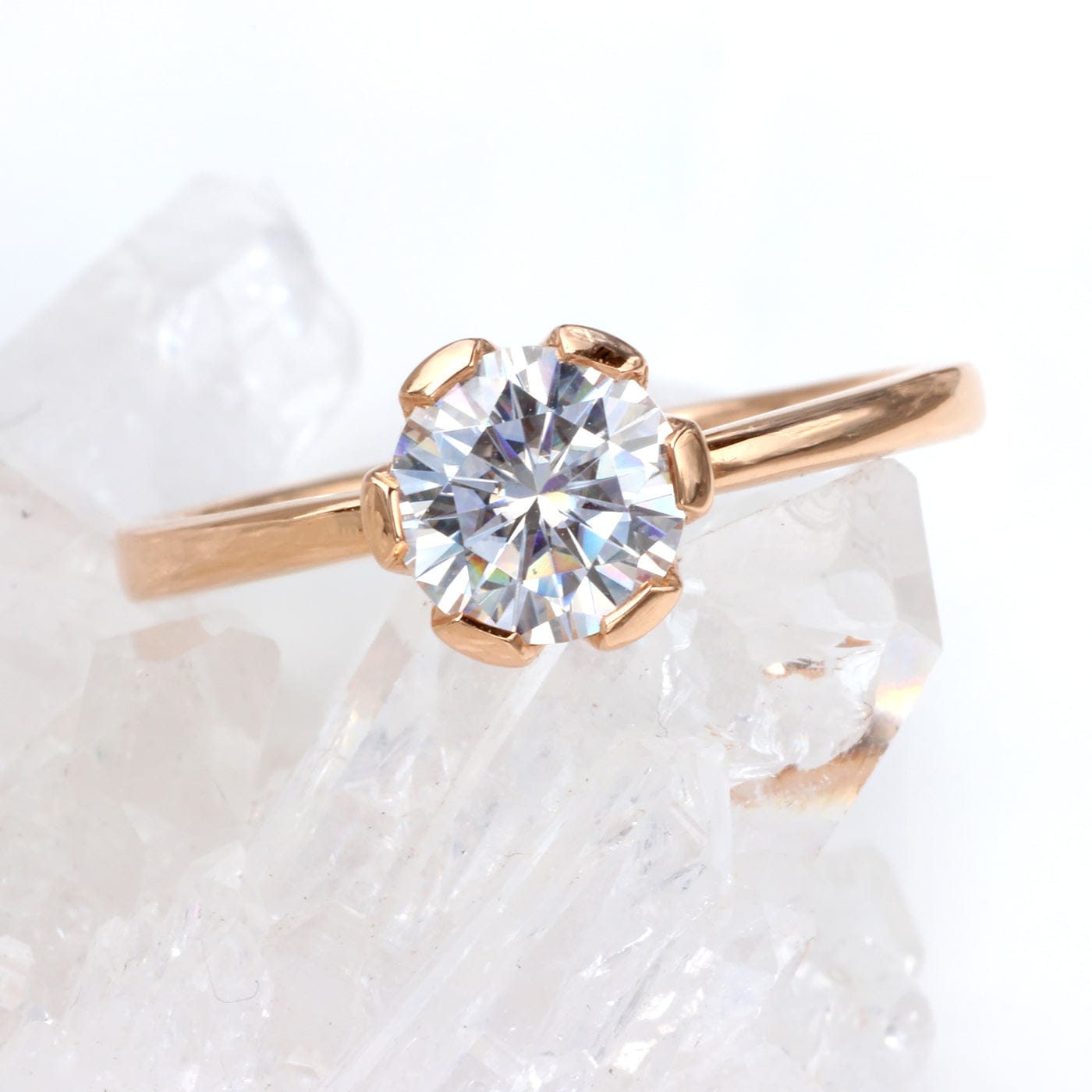 Custom 18ct Rose Gold Moissanite Flower Solitaire Engagement Ring