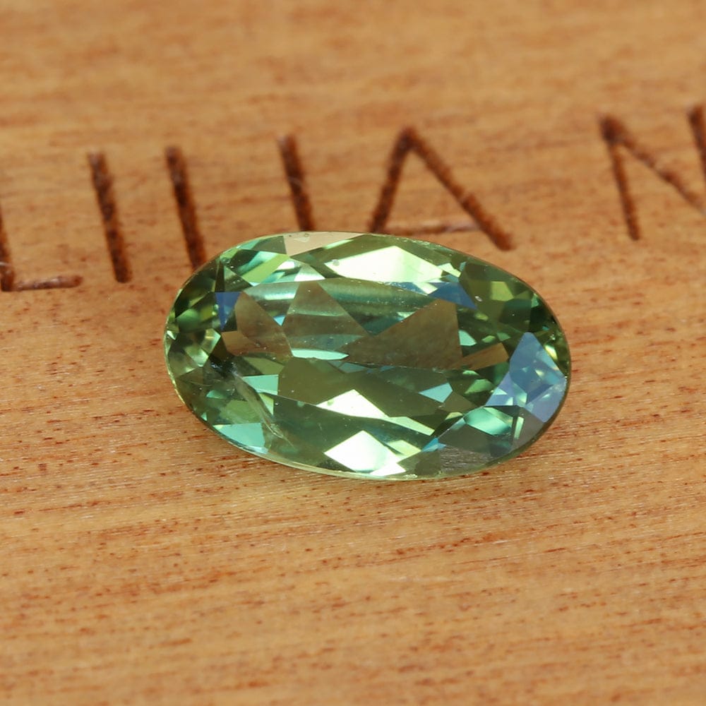 COLOUR - This long and narrow stone has a mix of mostly blue and yellow, giving the stone a teal green colouration. Natural and unheated