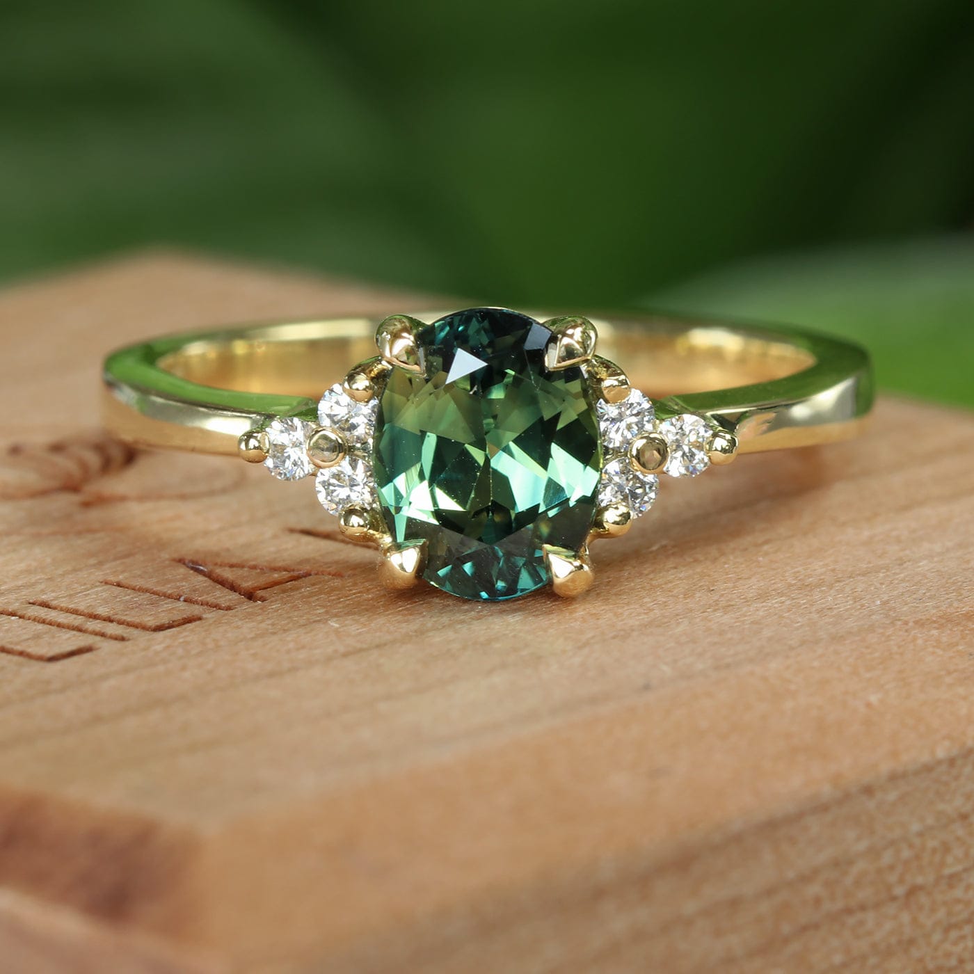 Parti sapphires are a rare type of corundum that include two or three colours in the stone - mainly blues, greens and yellows that perfectly complement one another, emulating similar iridescent colours to peacock feathers.