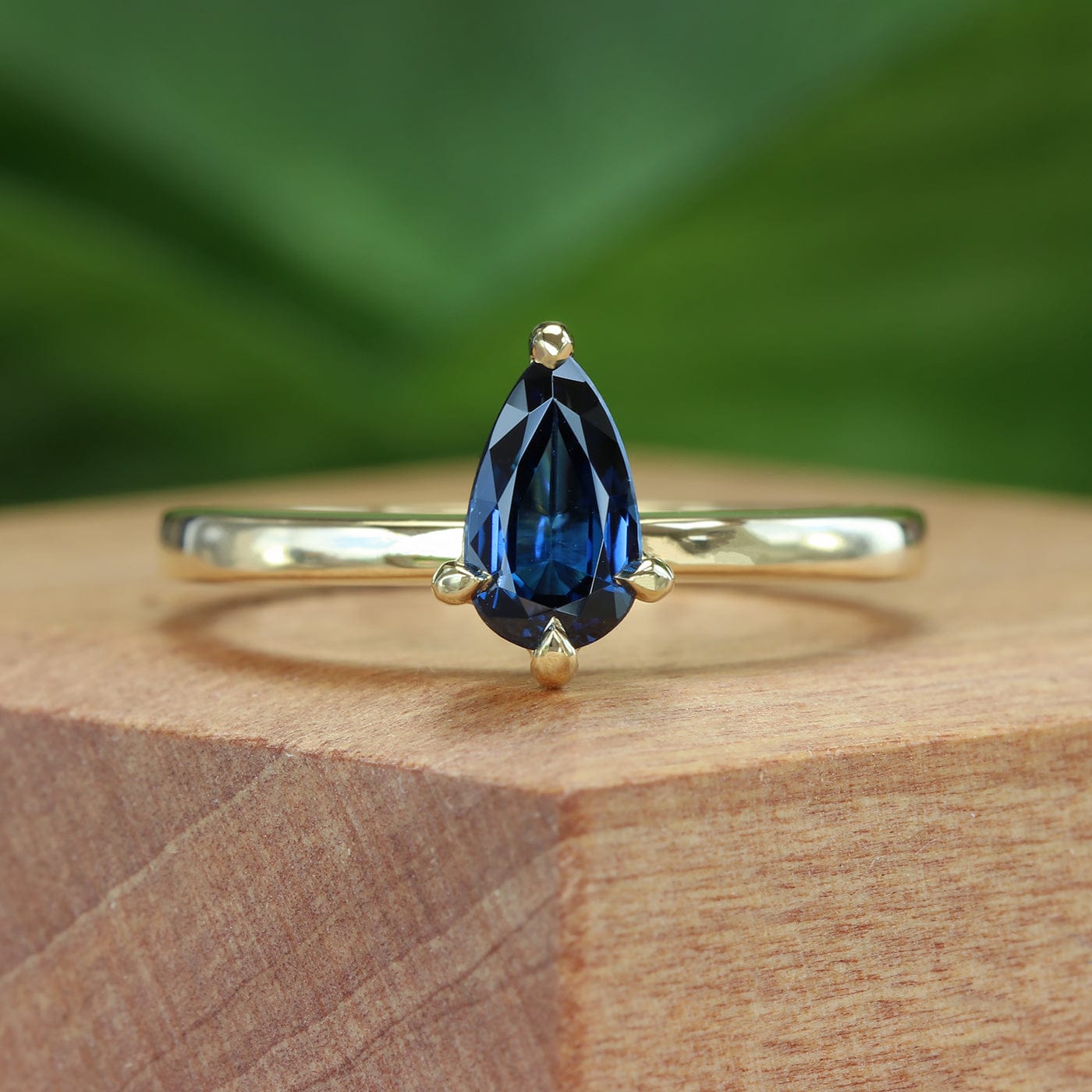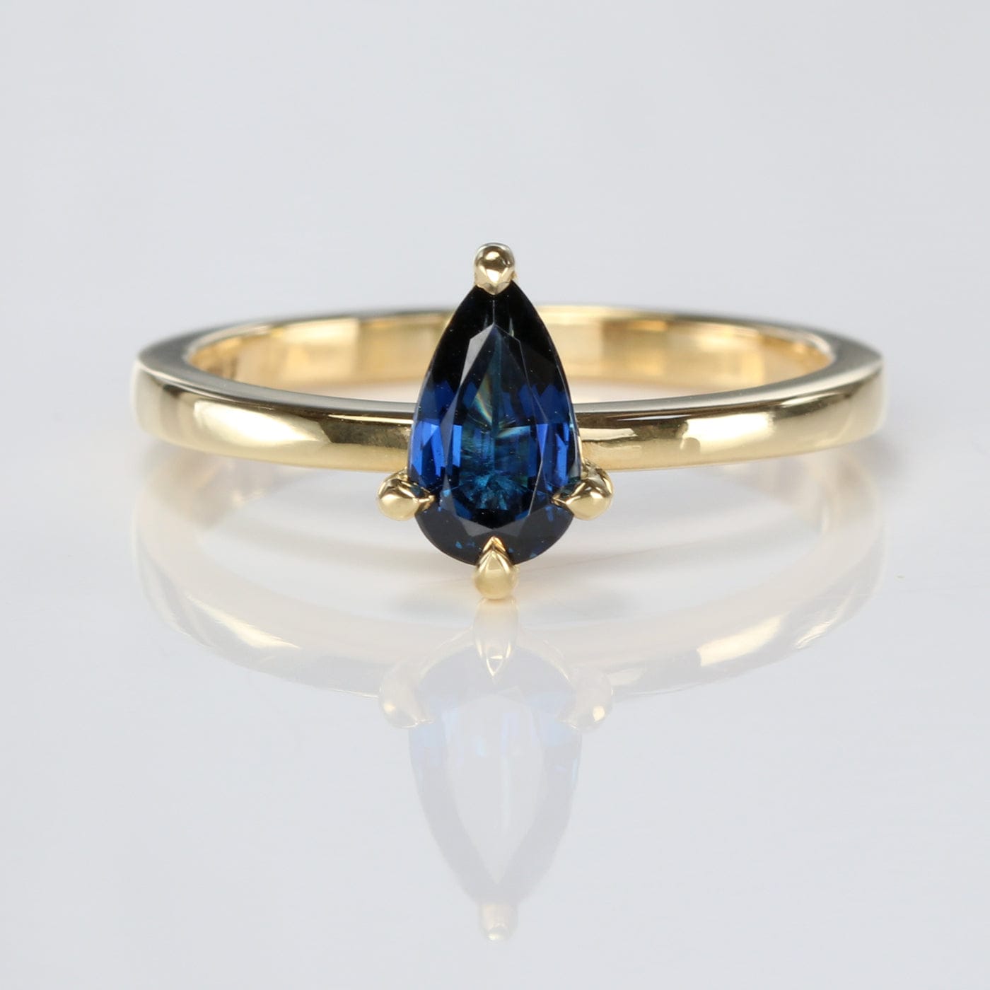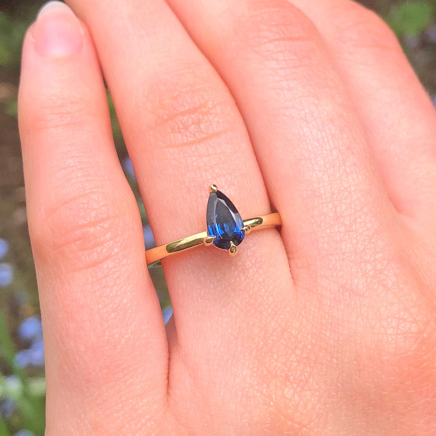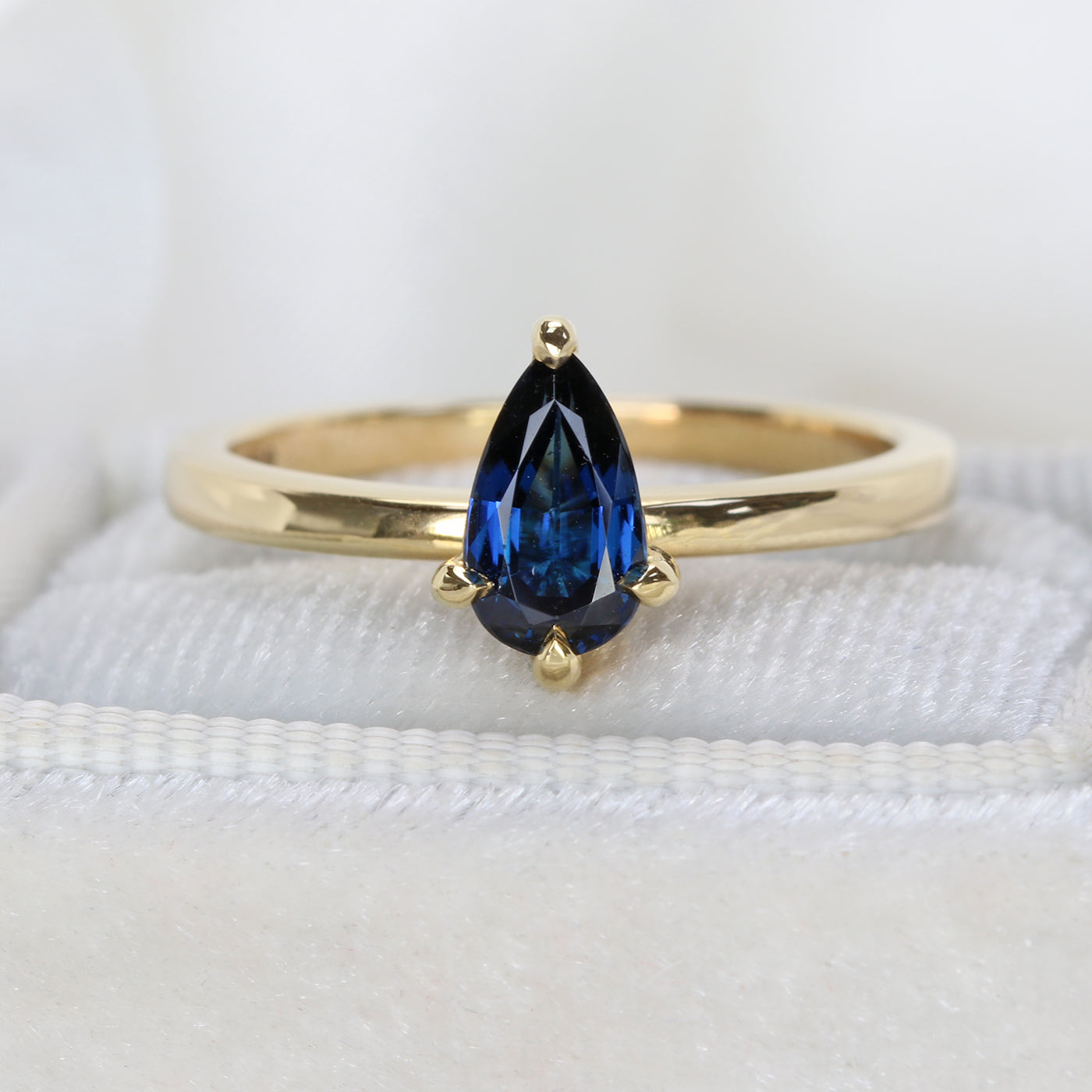 Bedruthen Handmade 18ct Gold Pear Cut Deep Blue Sapphire Engagement Ring