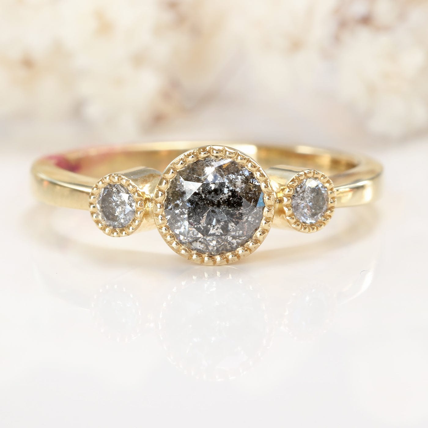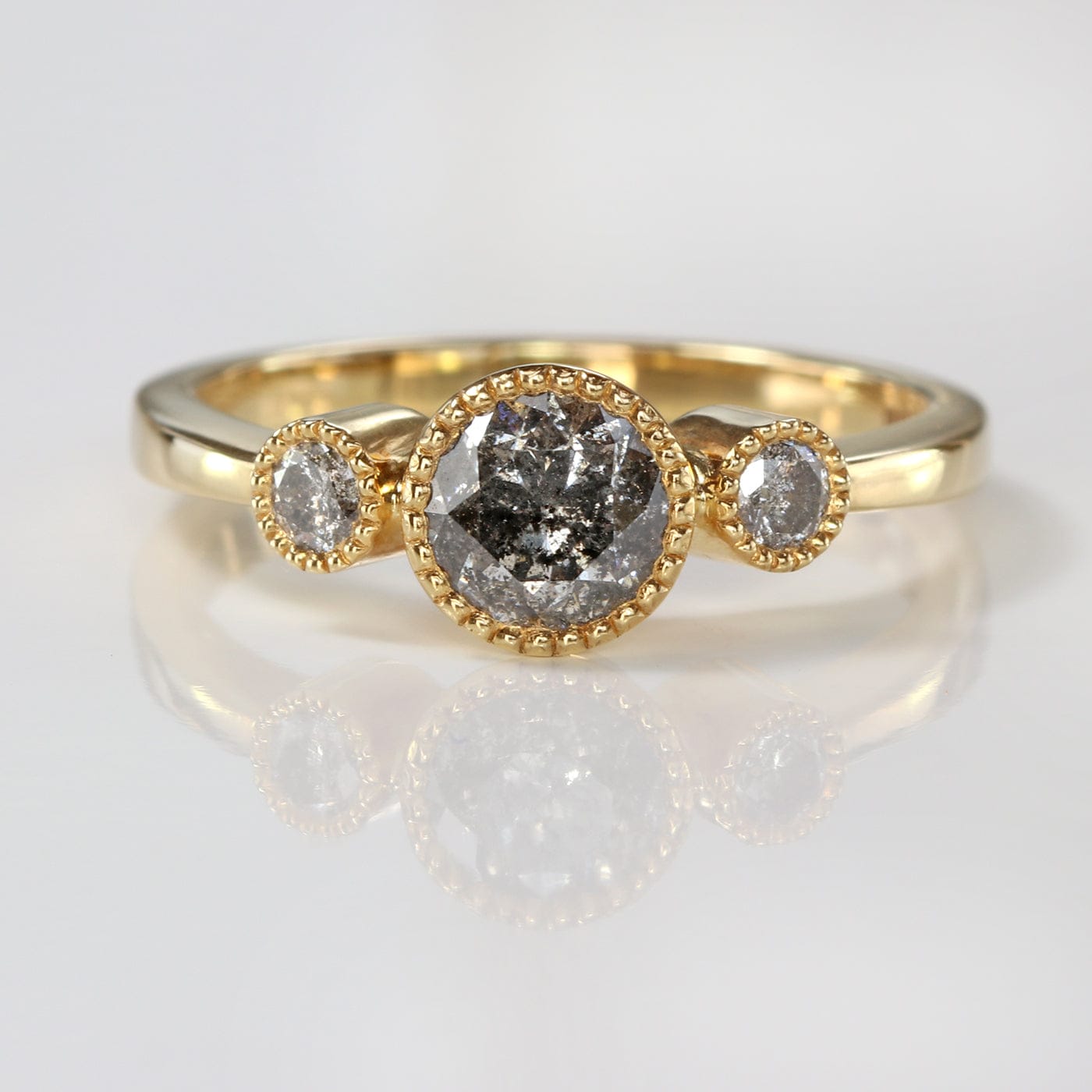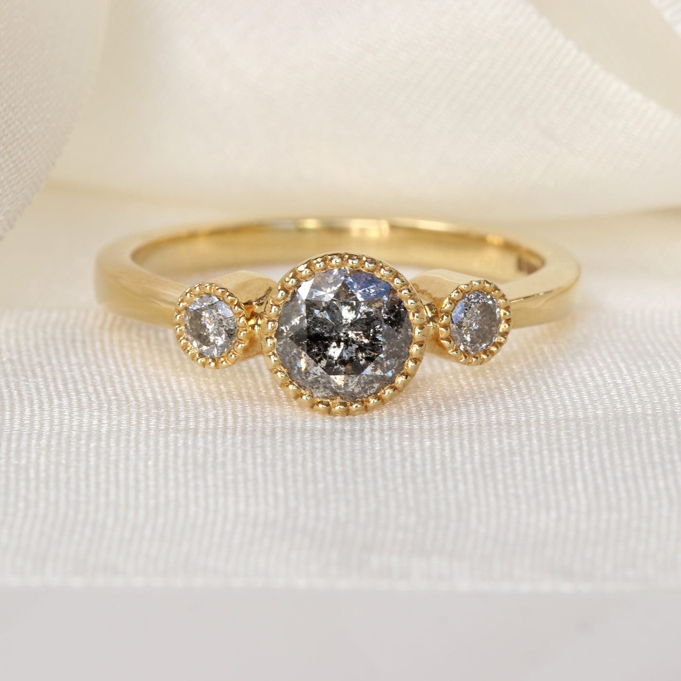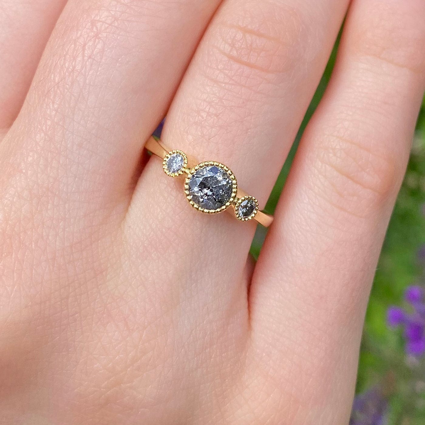 Custom Kerensa Handmade 18ct Gold Salt and Pepper Diamond Trilogy Engagement Ring