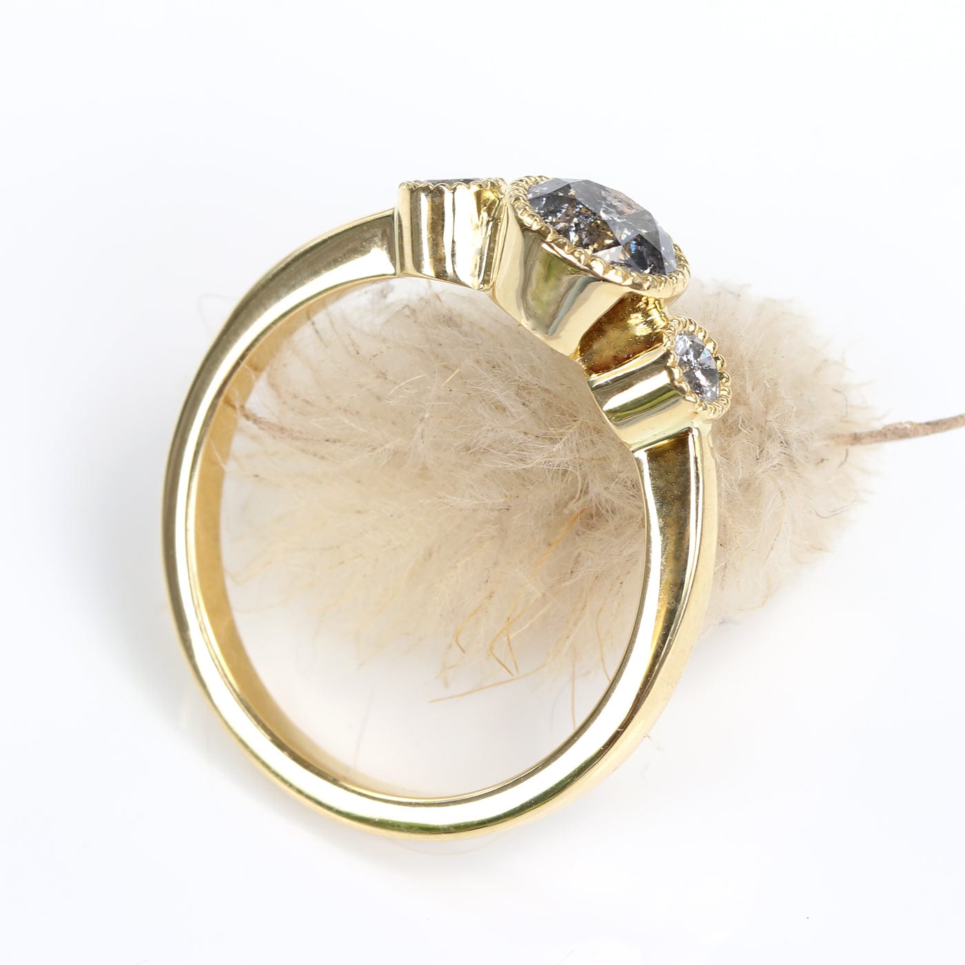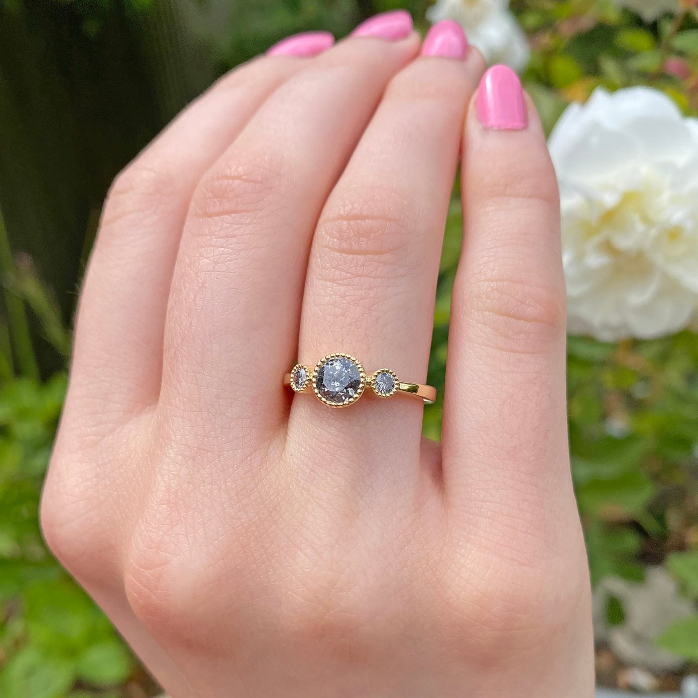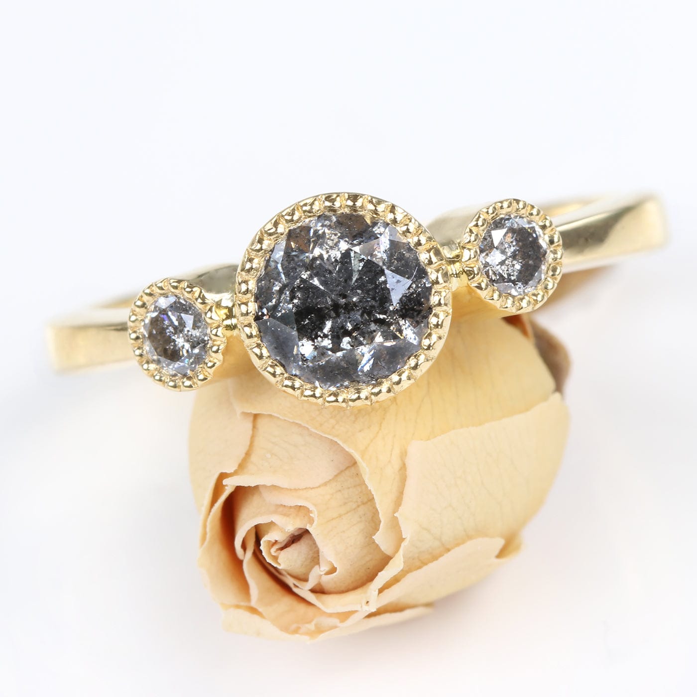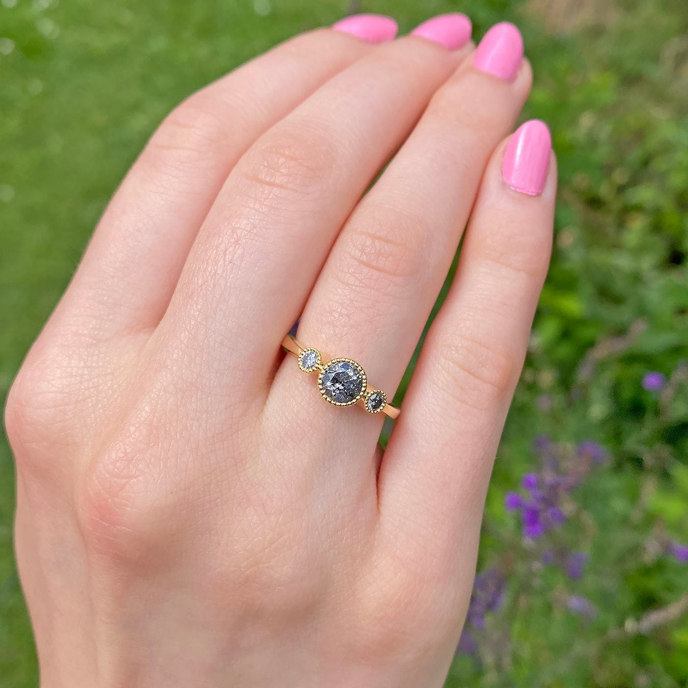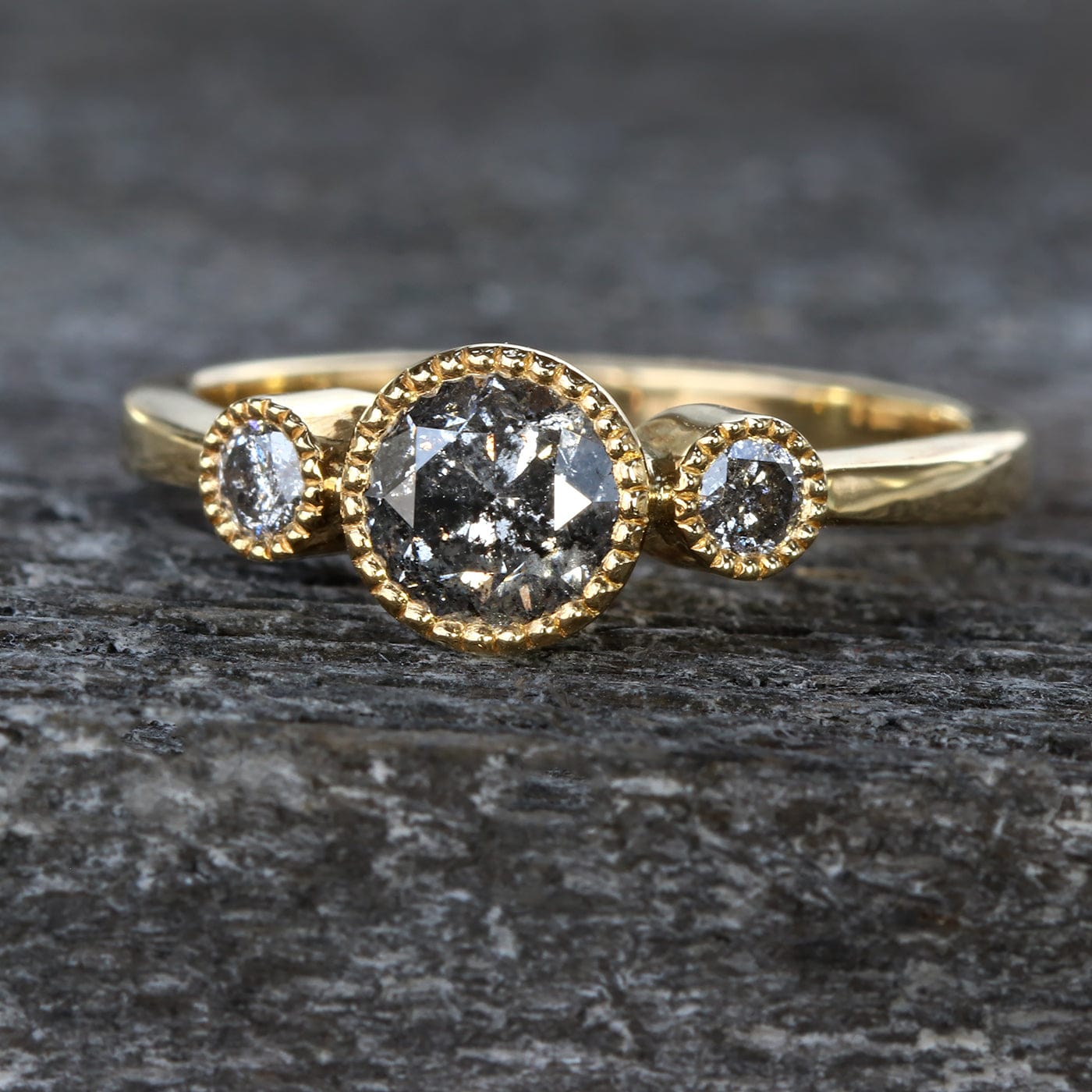 Custom Kerensa Handmade 18ct Gold Salt and Pepper Diamond Trilogy Engagement Ring
