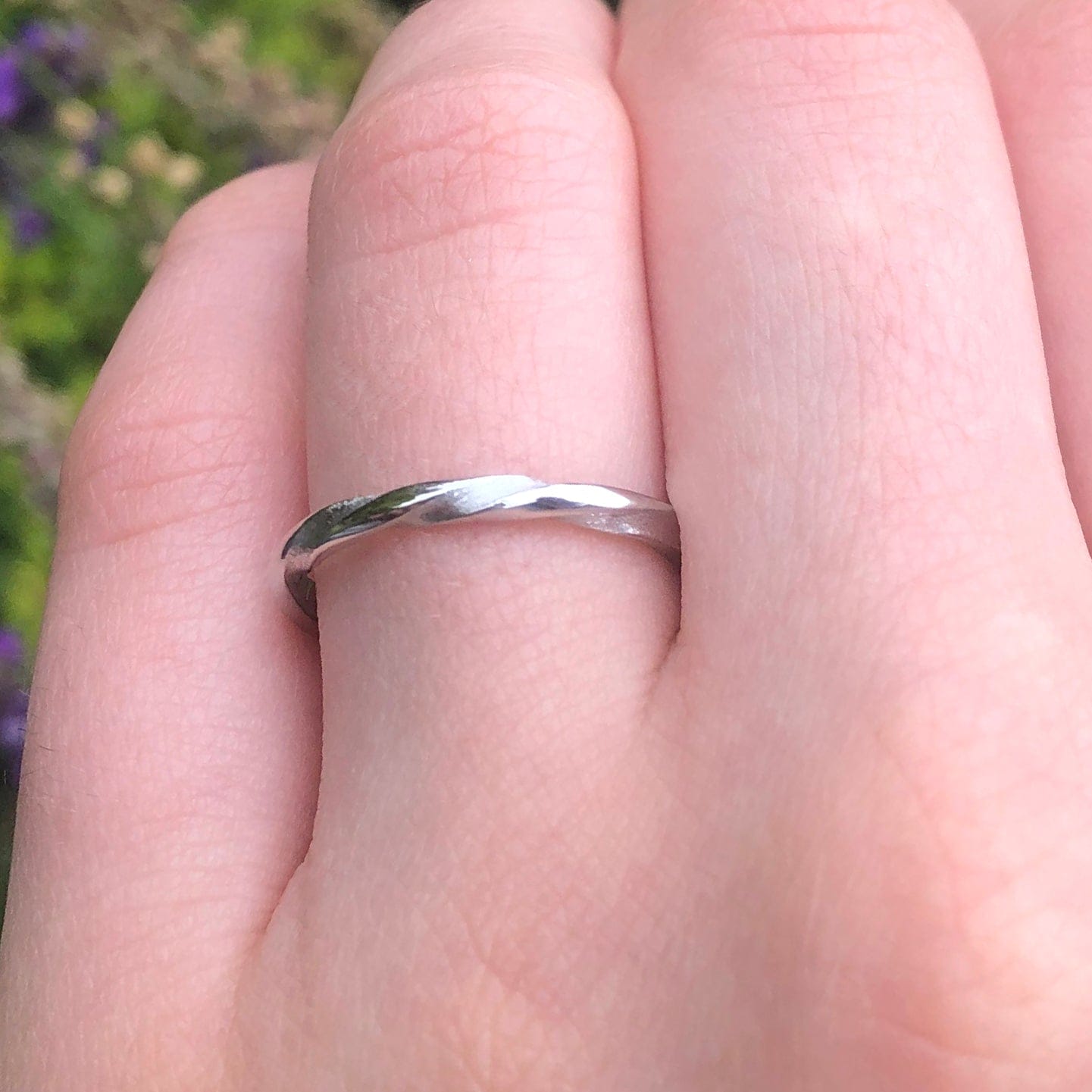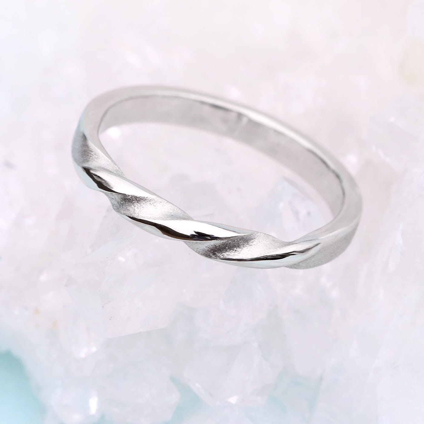 Handmade using solid 950 platinum from recycled platinum, the 2mm wide band features a trio of twists.