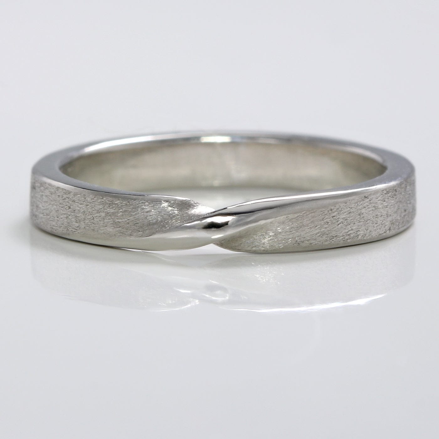 A modern plain band featuring a single twist in the centre, Lilia Nash's signature Ribbon Twist ring represents the union of two halves and is the perfect choice for a wedding ring, men's engagement ring or friendship ring.