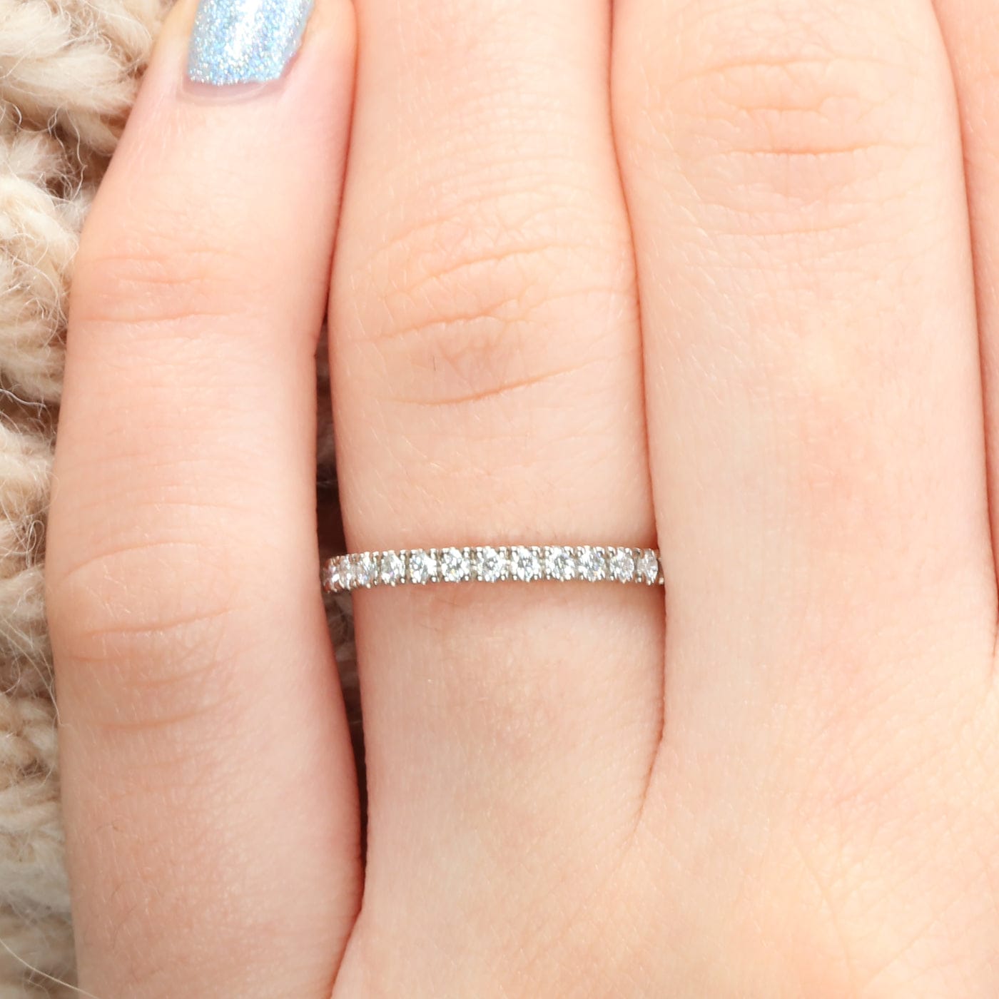 This exquisite half-eternity ring showcases fifteen radiant 1.3mm pavé set fair trade Canadian diamonds, gracefully adorning the front of its 1.8mm wide band. Every detail of the ring has been intricately crafted by Lilia herself in her dedicated studio nestled in the picturesque landscapes of Cornwall.