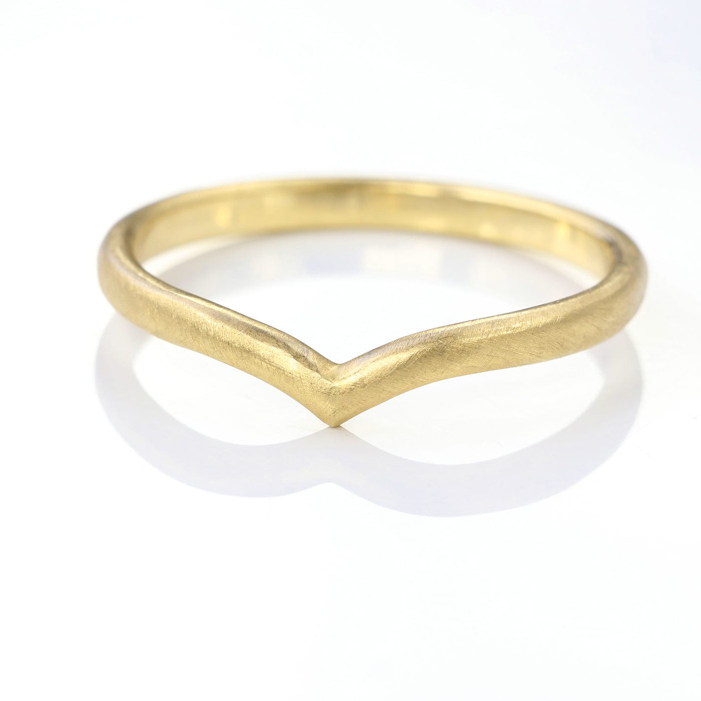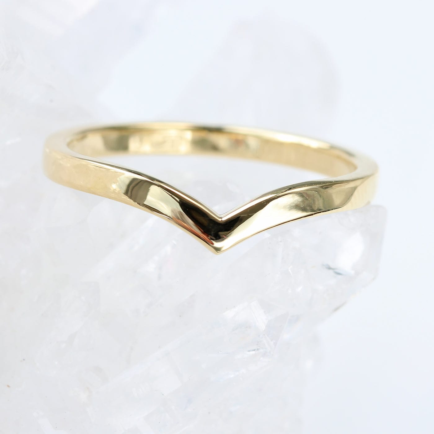 The perfect stacking ring to pair with a solitaire ring. Lilia Nash's wishbone ring features a slim 2mm band with a chevron in the centre to help it fit closer when worn paired.
