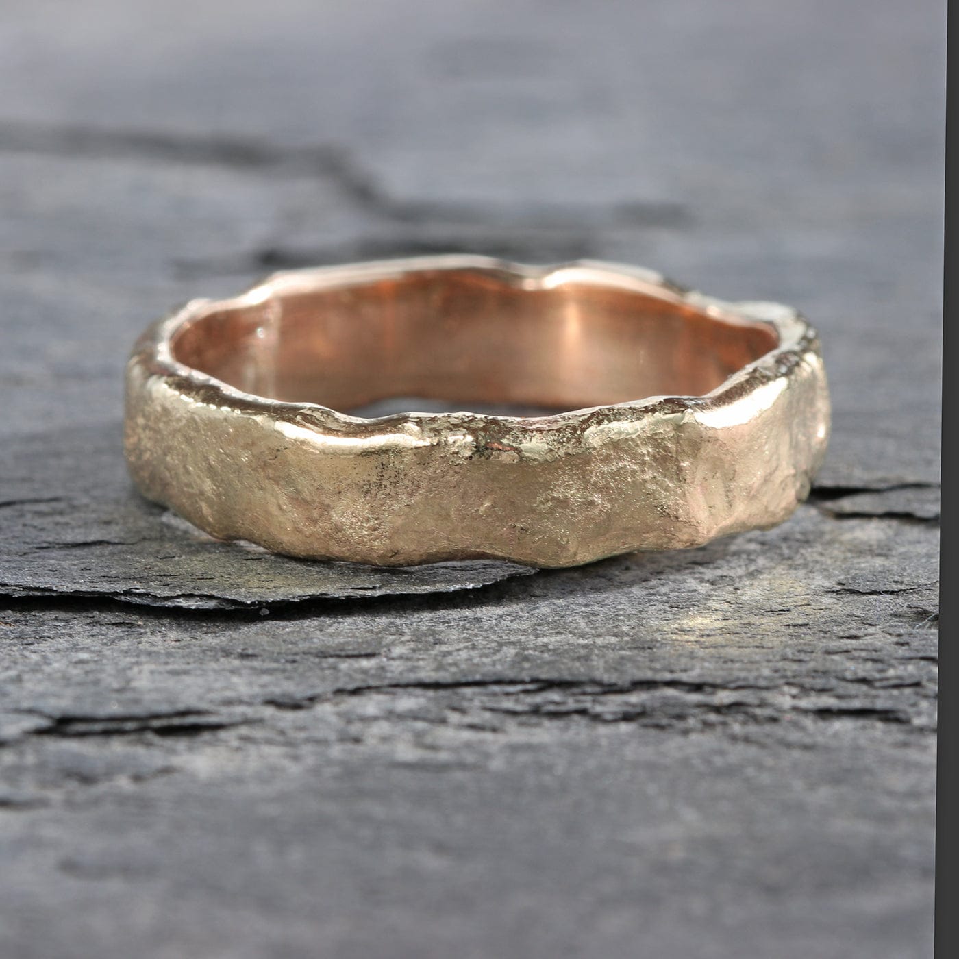 Forged from the essence of fire, our Mineral rings emerge as our fresh line of free-form wedding bands. Evoking nature's artistry, it appears as though these rings were sculpted from molten lava. This 5mm band, suitable for men or as a broader choice for women, is an unparalleled selection for the groom yearning for a piece absent from conventional stores.