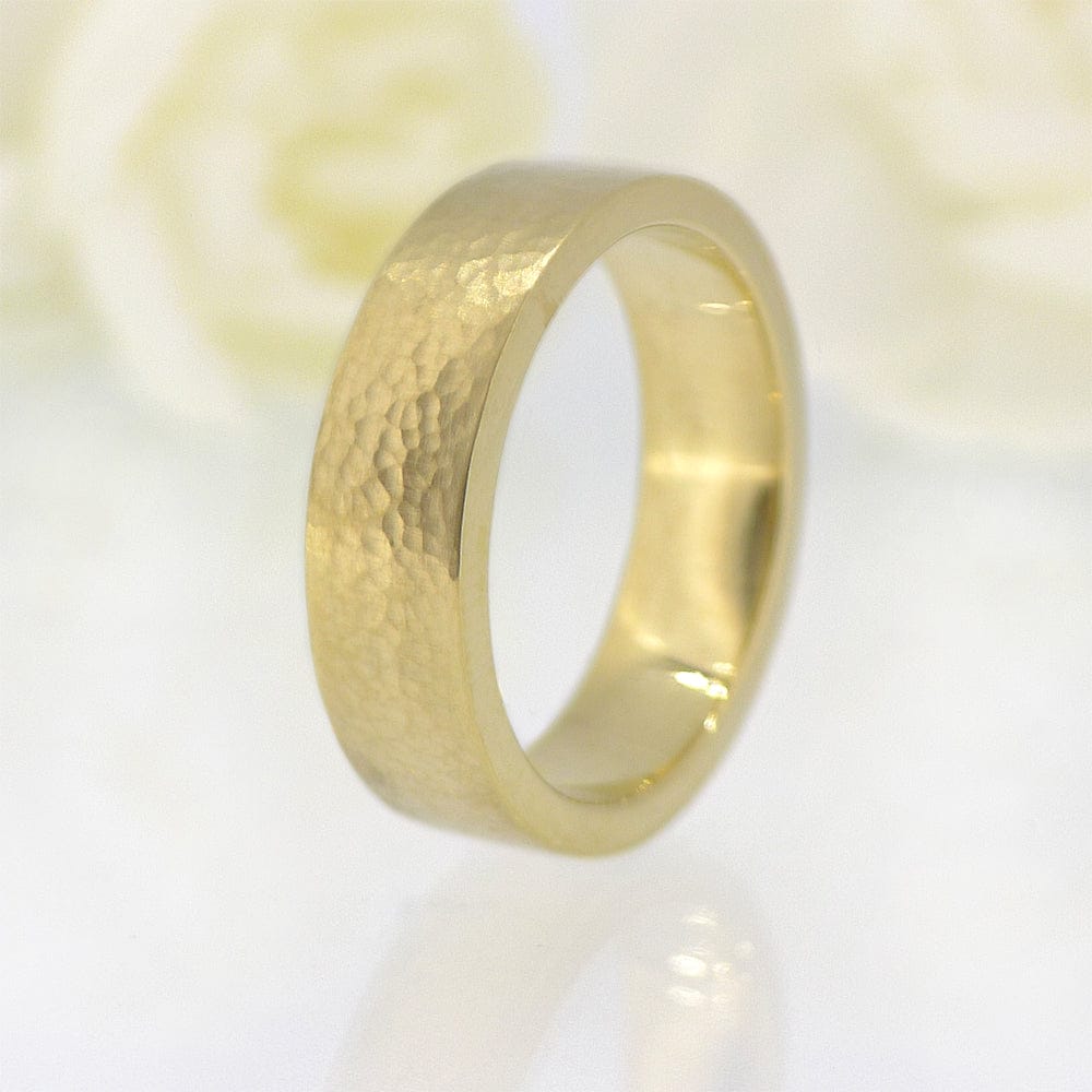 18ct Gold 6mm Flat Hammered Wedding Ring