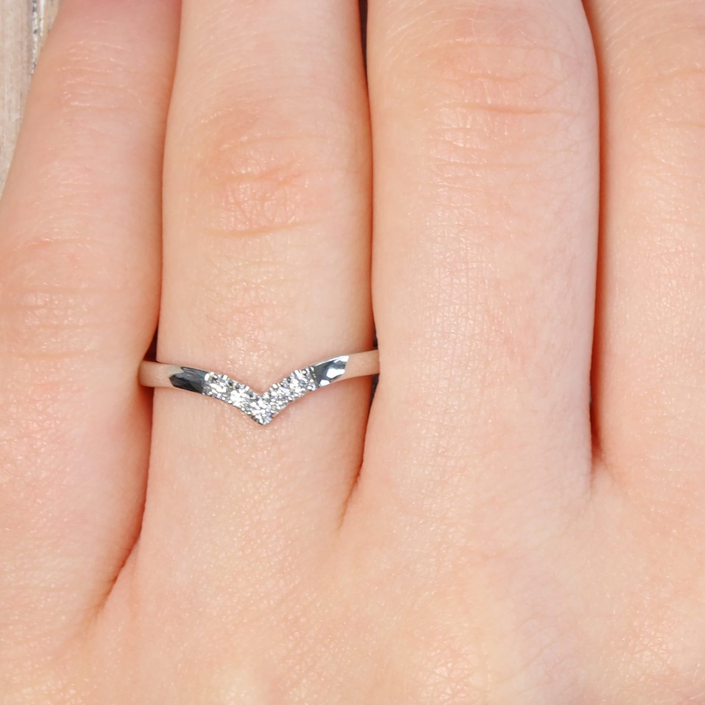 A pretty 950 platinum wishbone ring, pavé set with five Canadian fair trade diamonds. This ring is suitable for wear as either a wedding ring or eternity ring, or wear several together to create a unique ring stack.