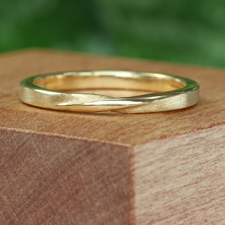 18ct Gold Slim 2mm Spun Silk Ribbon Twist Wedding Ring