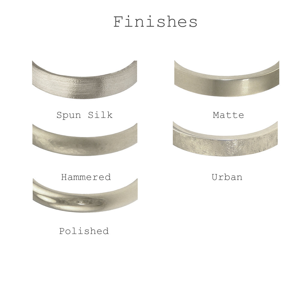 Handmade to order in any ring size or half size, with Lilia's Spun Silk finish with polished edges.
