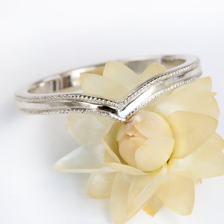 18ct White Gold Milgrain Engraved Wishbone Wedding Ring
