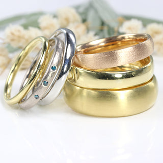Every bespoke wedding ring by Lilia Nash begins with selecting your preferred band style. While every design in our collection can be tailored to your liking, you simply need to identify the one that aligns closest with your vision.