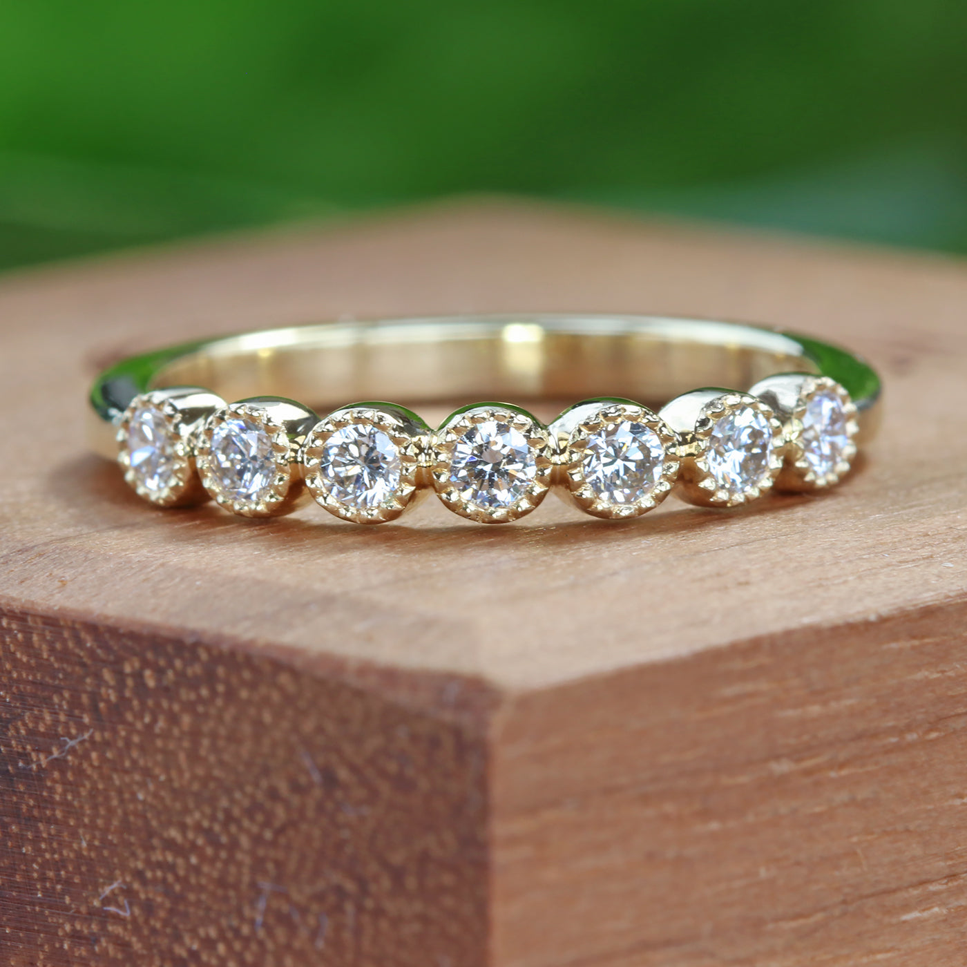 Seven Diamond Milgrain Engraved Wedding Ring in 18ct Gold