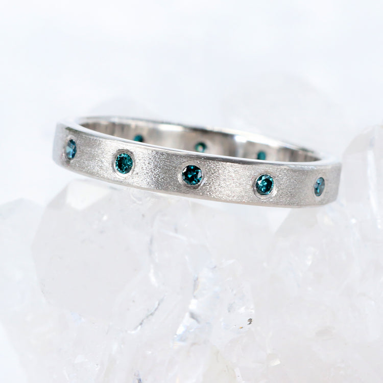 Custom Teal Blue Diamond Eternity Ring in 950 Platinum