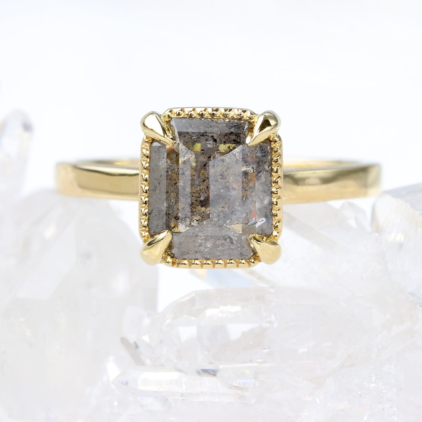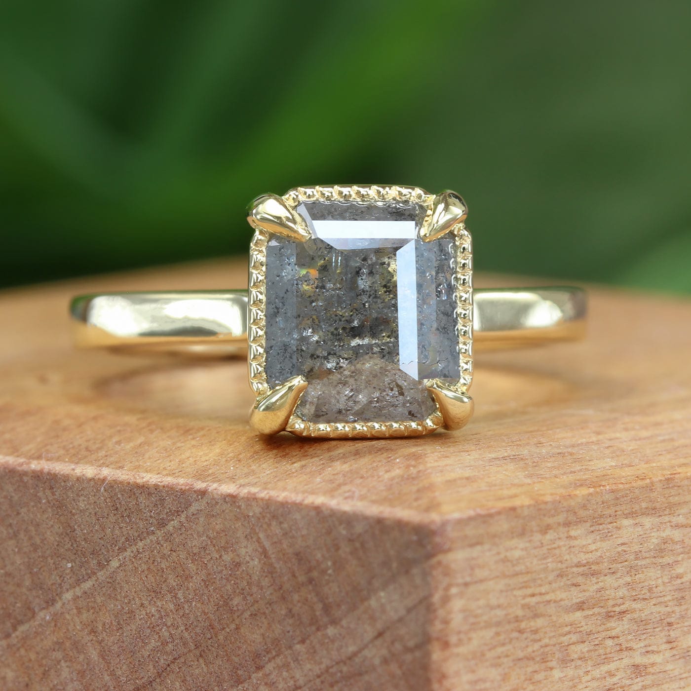 Endellion Handmade 18ct Gold Emerald Cut Salt and Pepper Diamond Engagement Ring