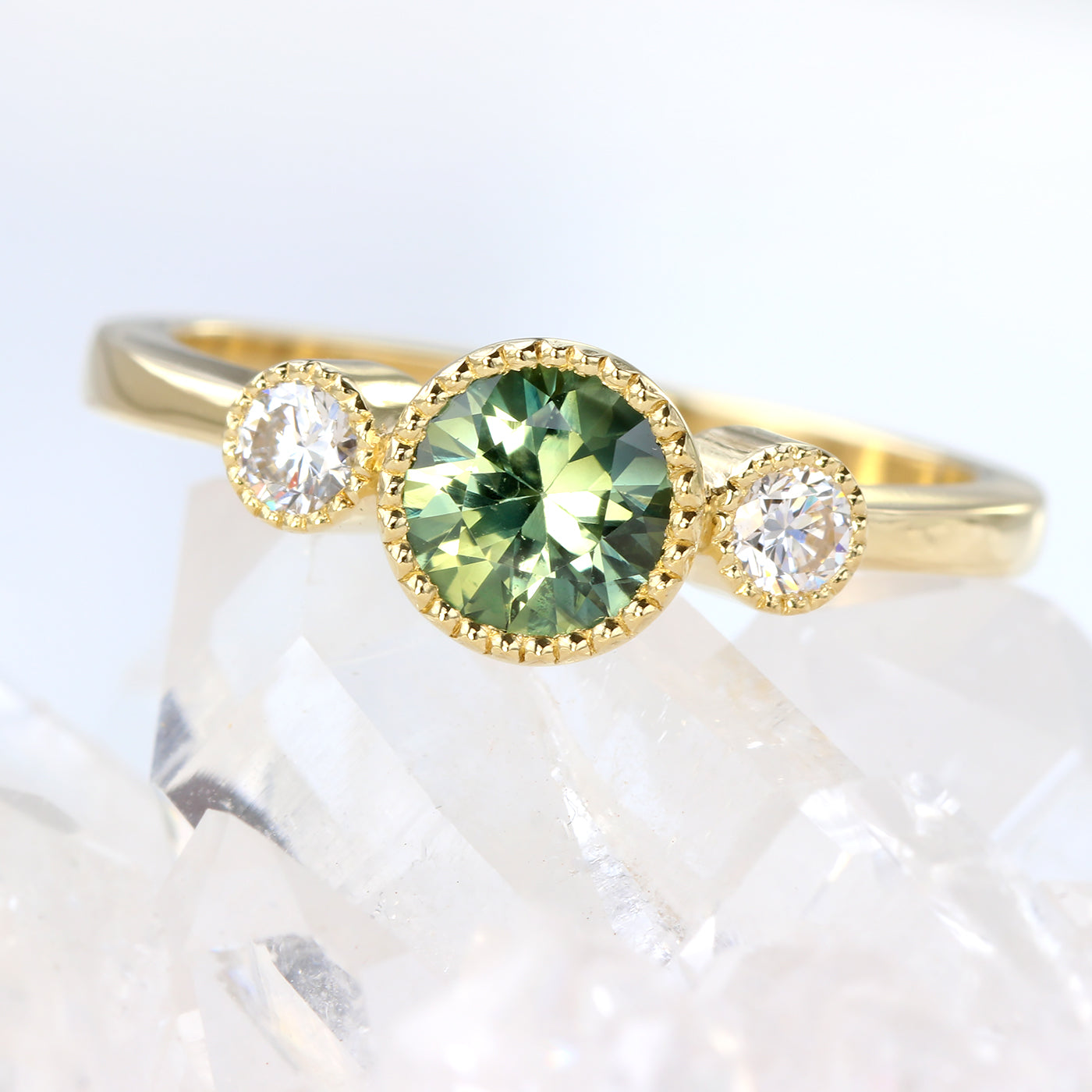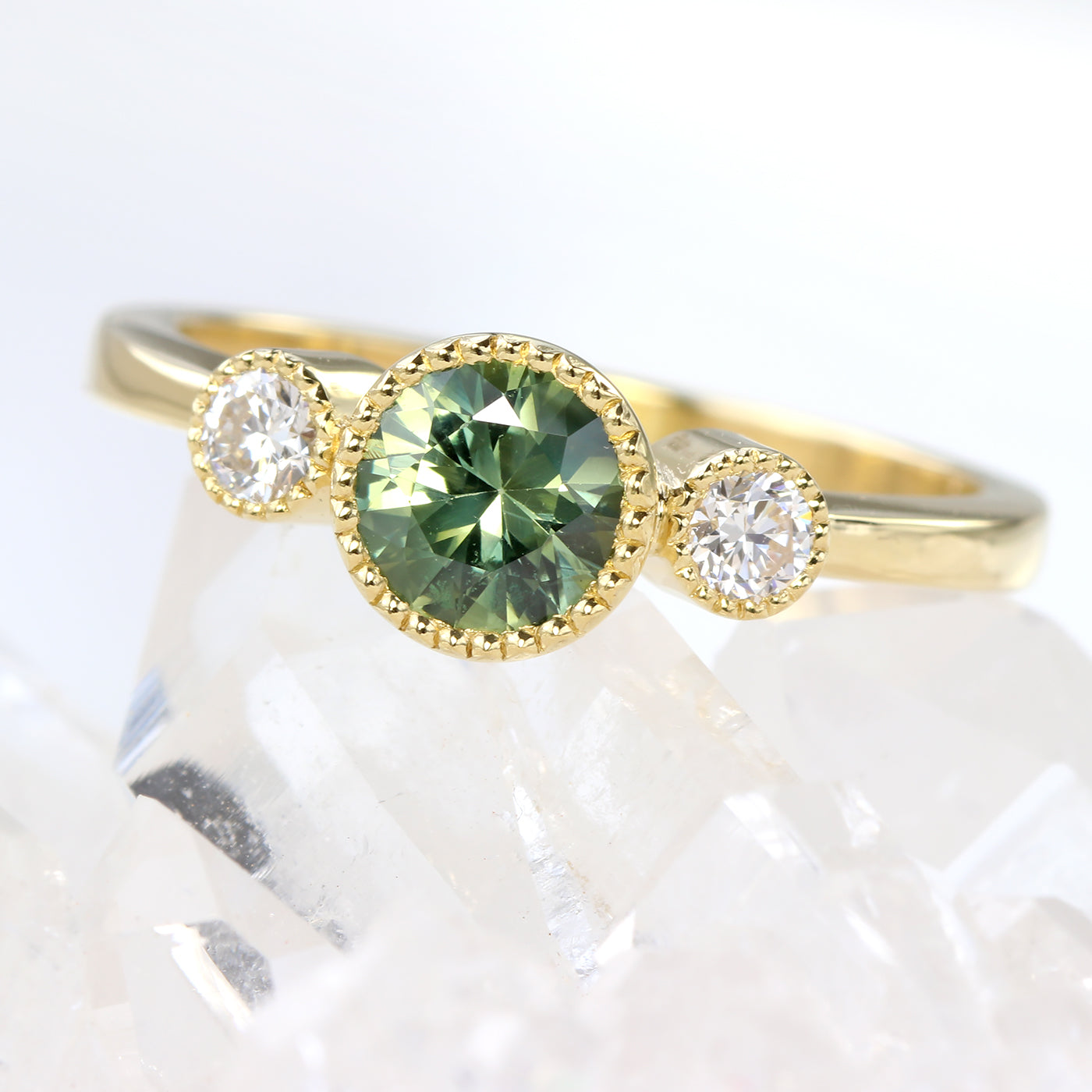 18ct Gold Green Sapphire and Diamond Trilogy Engagement Ring