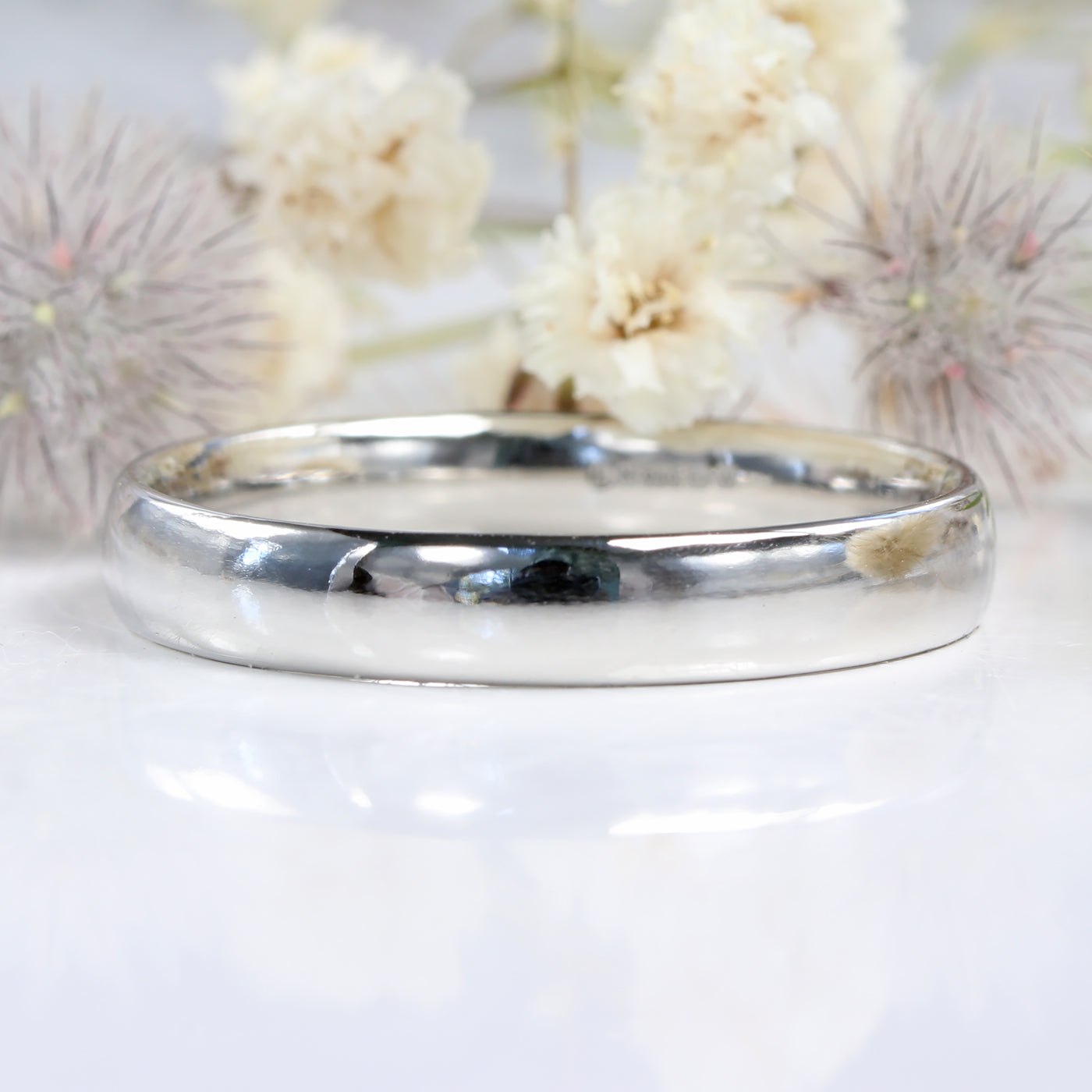 Available now in size T, the rounded edges of this ethical solid 950 platinum wedding ring makes it very comfortable to wear.