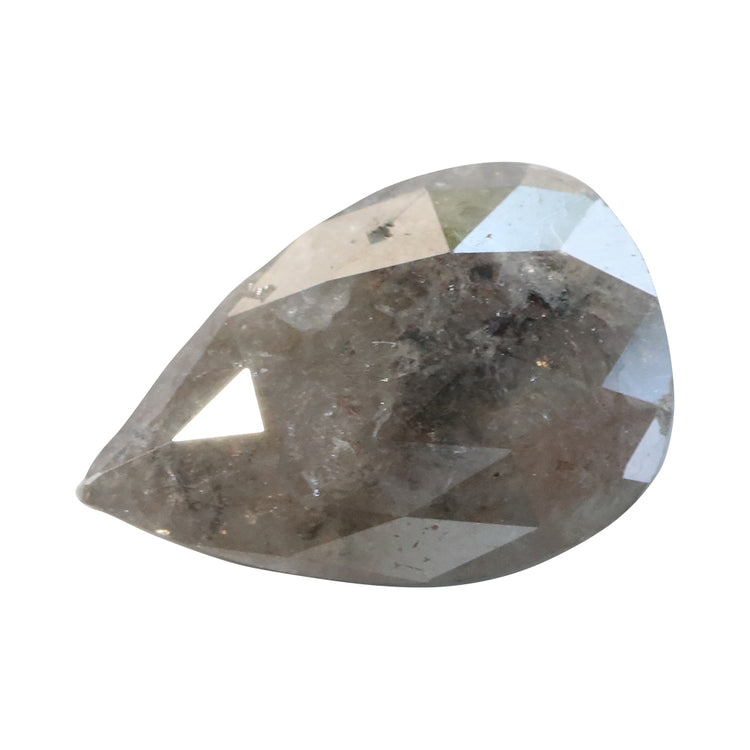 A large pear shape natural salt and pepper translucent diamond. This rose cut diamond was cut from ethically sourced rough from Botswana.